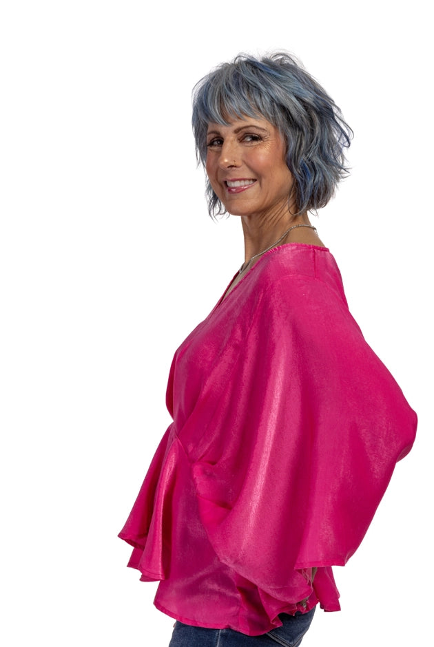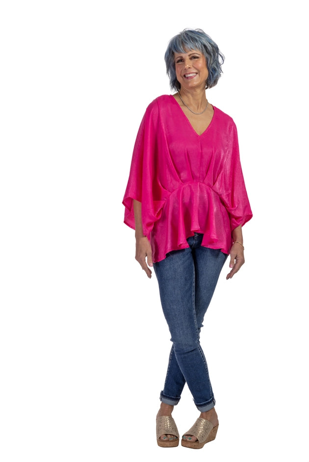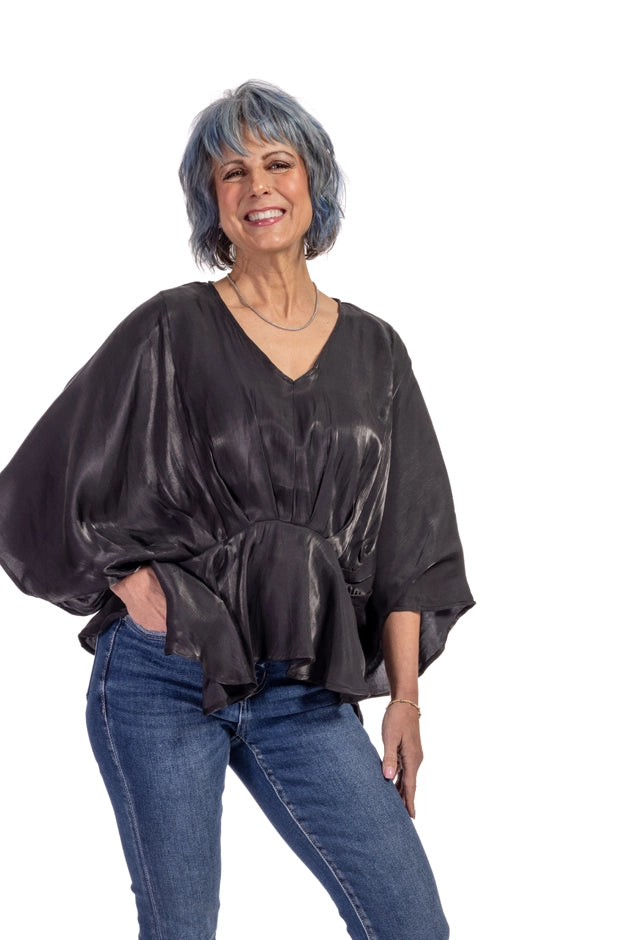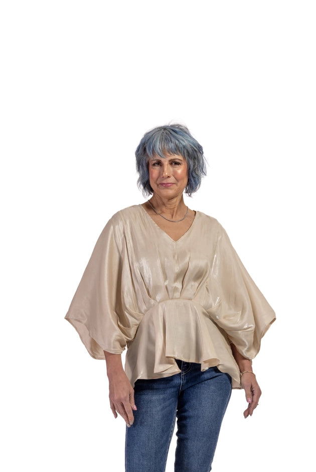 Women's Feminine Peplum 3/4 Kimono Sleeve Top