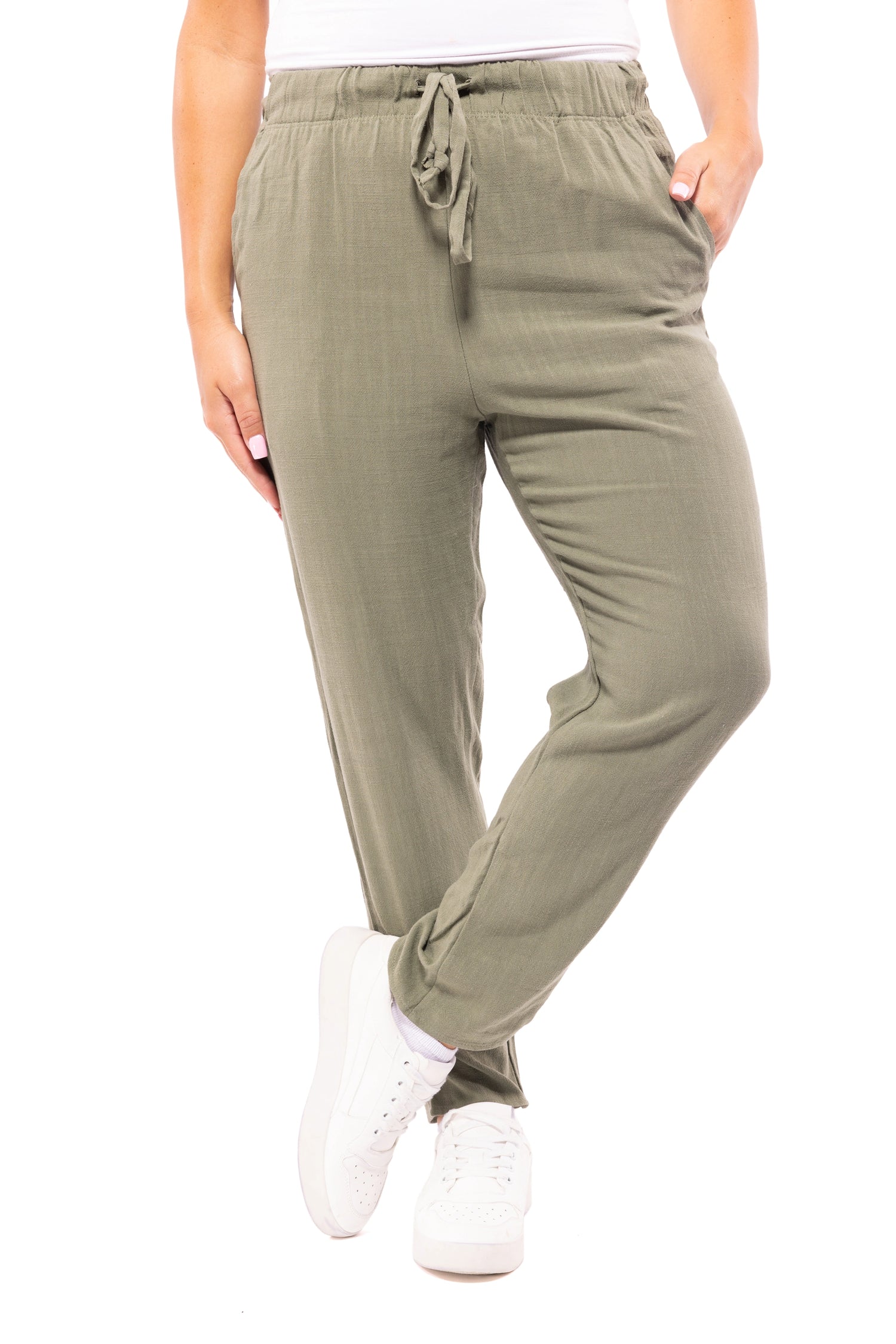 The Inspiration Pants by Jodifl are a linen cropped pant with elastic waistband and functioning drawstring. These pants also come with pockets! Perfect for running all your errands or relaxing around the house!