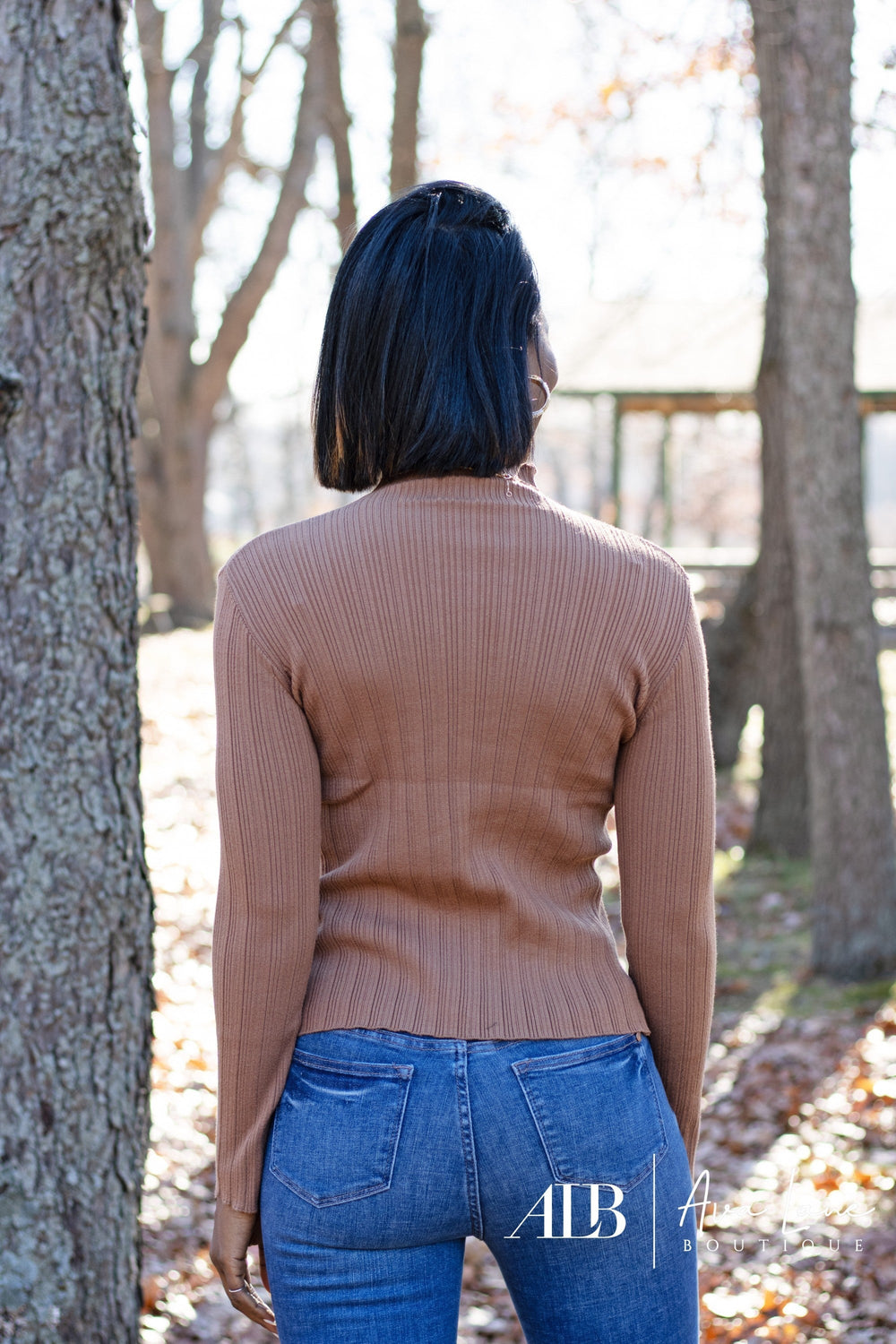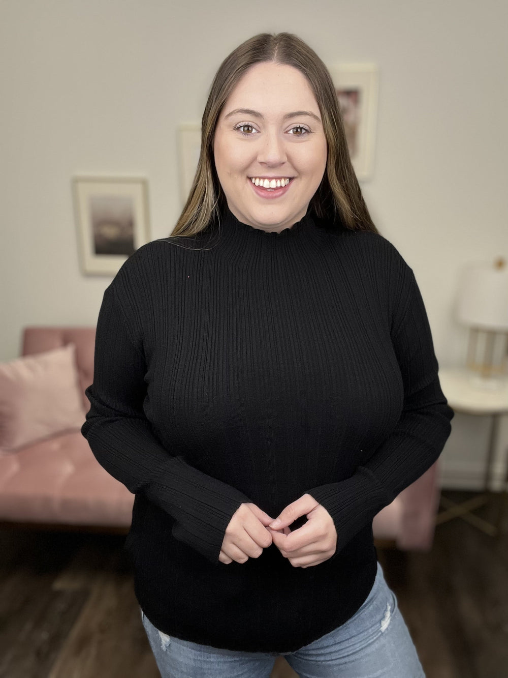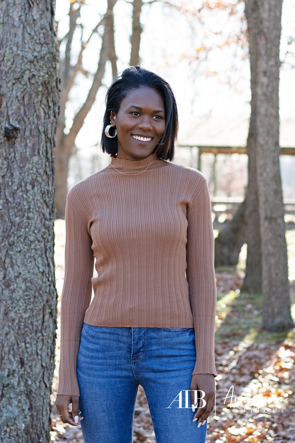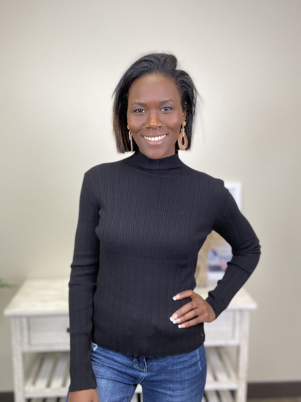 Let us introduce you to your new happiness. The Introduced Happiness Sweater by Heimish is so trendy and fabulous for the fall and winter. The ribbed knit fabric is so stretch and we love the turtleneck. It features a lettuce trimmed turtleneck, long sleeves, lettuce trim hemline and a fitted bodice. It will pair well on its own or underneath a shacket.