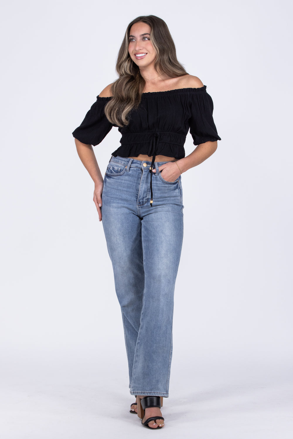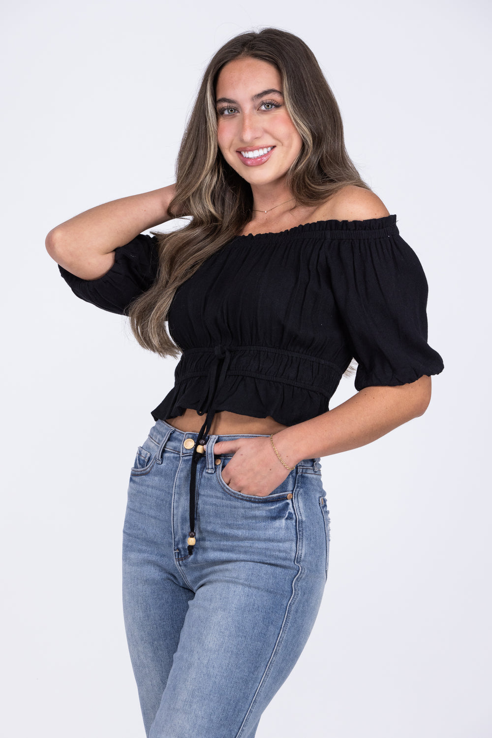 Island Girl Women's Tie Front Off The Shoulder Crop Top *Final Sale*