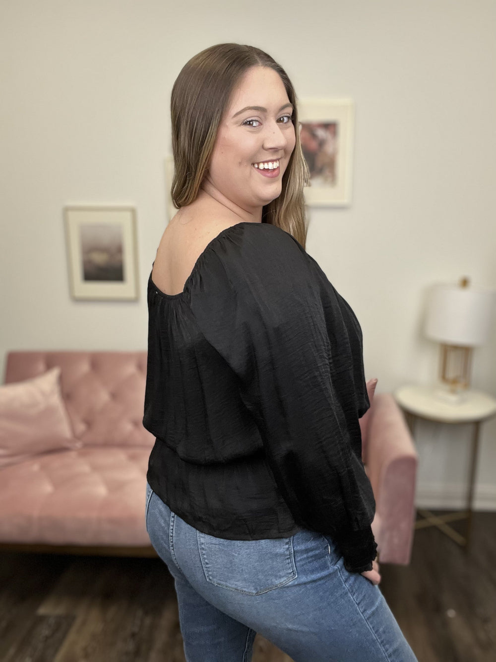 It's A Cool World Top by She + Sky is perfect for your boho vibes! It is a smocked long sleeve top with an elastic waist, ruffled round hem, and an elastic square neckline. Wear it off the shoulder or not and pair with your favorite denim to show off your style!