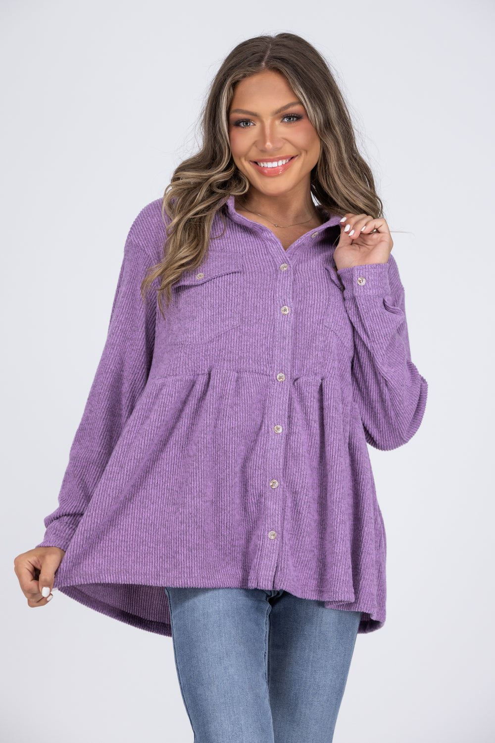Just Like Old Times Women's Double Breasted PocketsLong Sleeve Top *Final Sale*