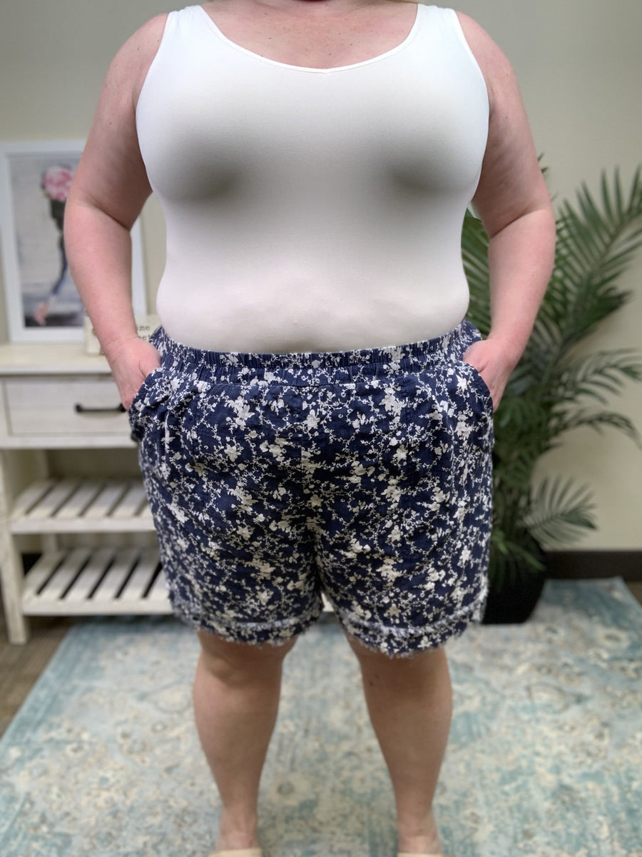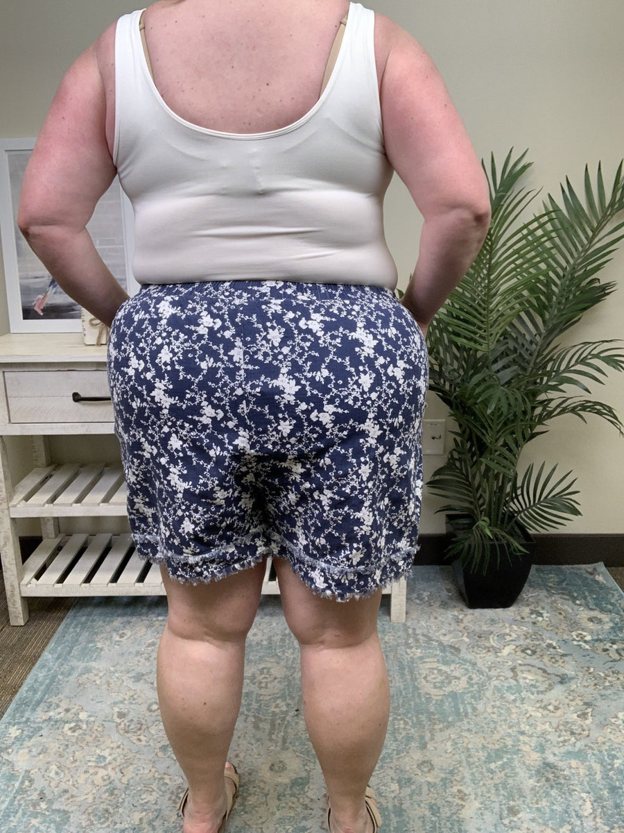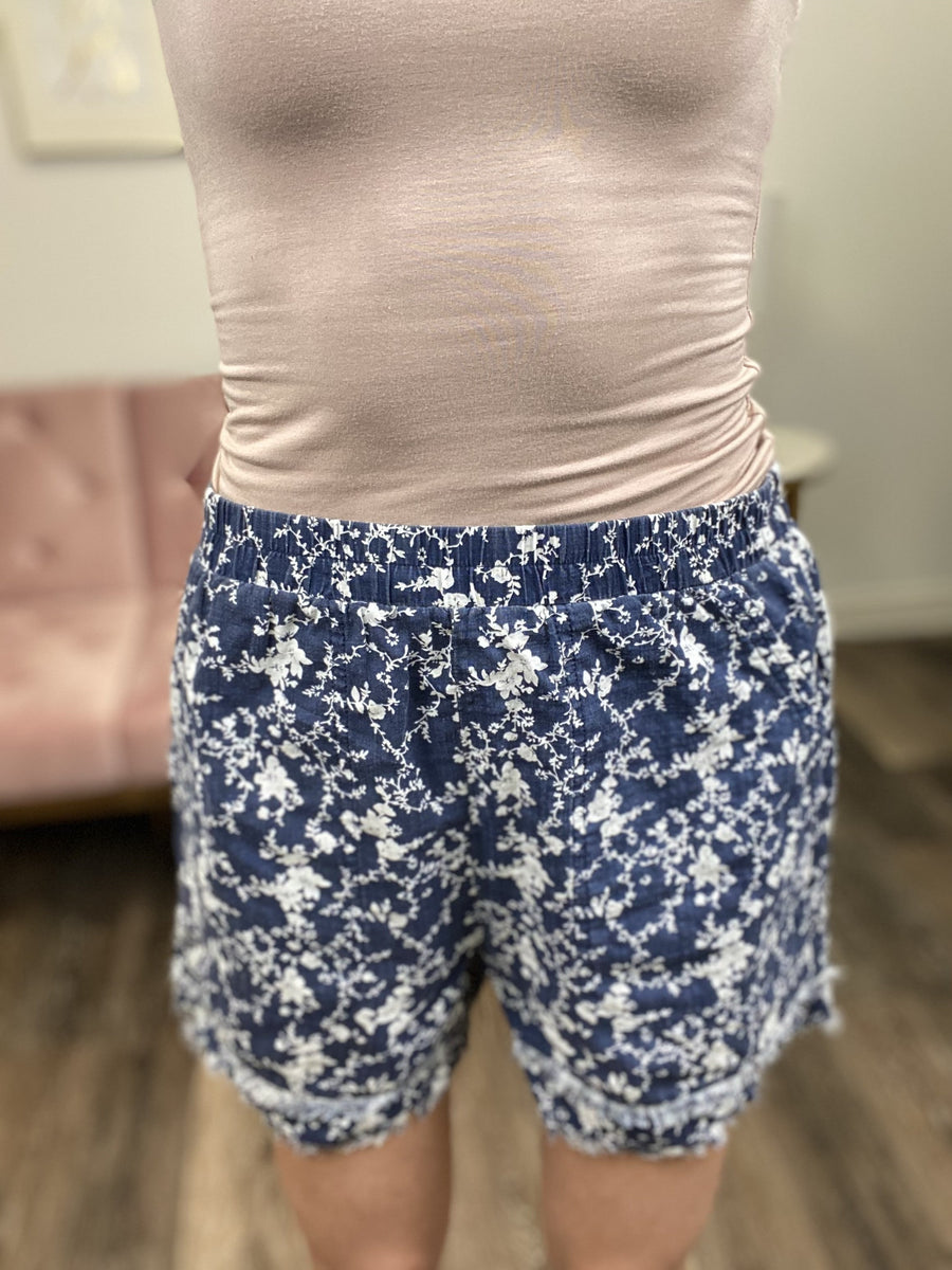 The Keep Me Guessing Shorts By Cotton Bleu is a cotton pair of shorts. It features an elastic waist band, side pockets, floral print, washed cotton fabric and frayed details. Pair with a tank and denim jacket for a cute and casual outfit!