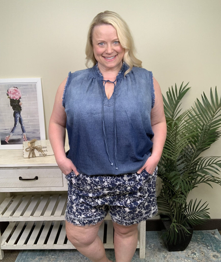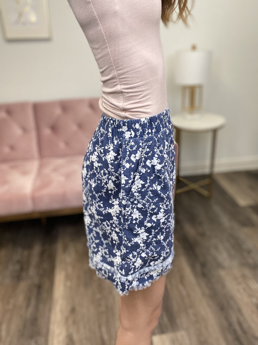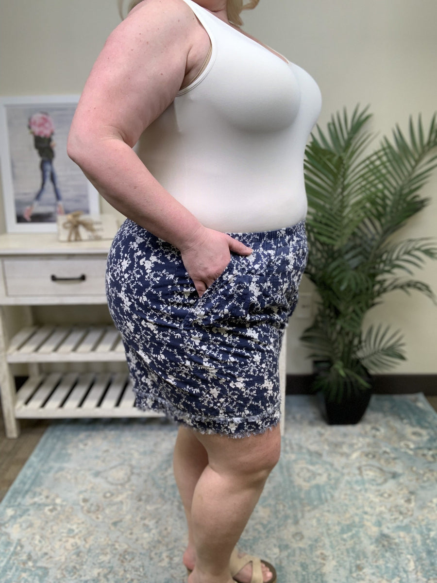 The Keep Me Guessing Shorts By Cotton Bleu is a cotton pair of shorts. It features an elastic waist band, side pockets, floral print, washed cotton fabric and frayed details. Pair with a tank and denim jacket for a cute and casual outfit!