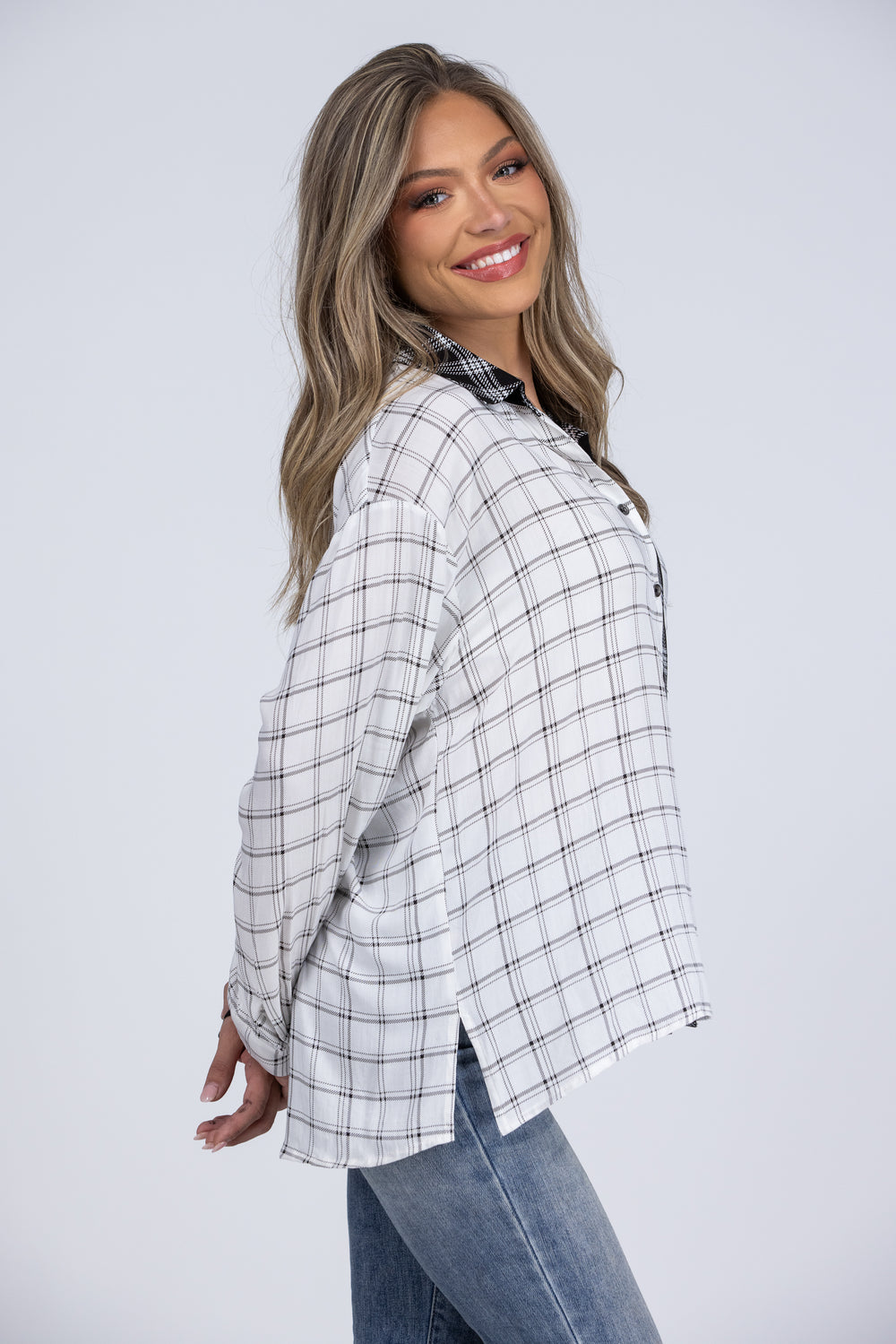 The Keeps Getting Better Top from Andree by Unit is a classic with a twist. It features a black and ivory pattern, a front chest pocket, and a button-up front. The hi-lo hemline adds some edge and style to your outfit, while the soft and cozy fabric keeps you comfortable all day long. This top is perfect for layering, mixing and matching, and dressing up or down. You'll love how this top keeps getting better with every wear!