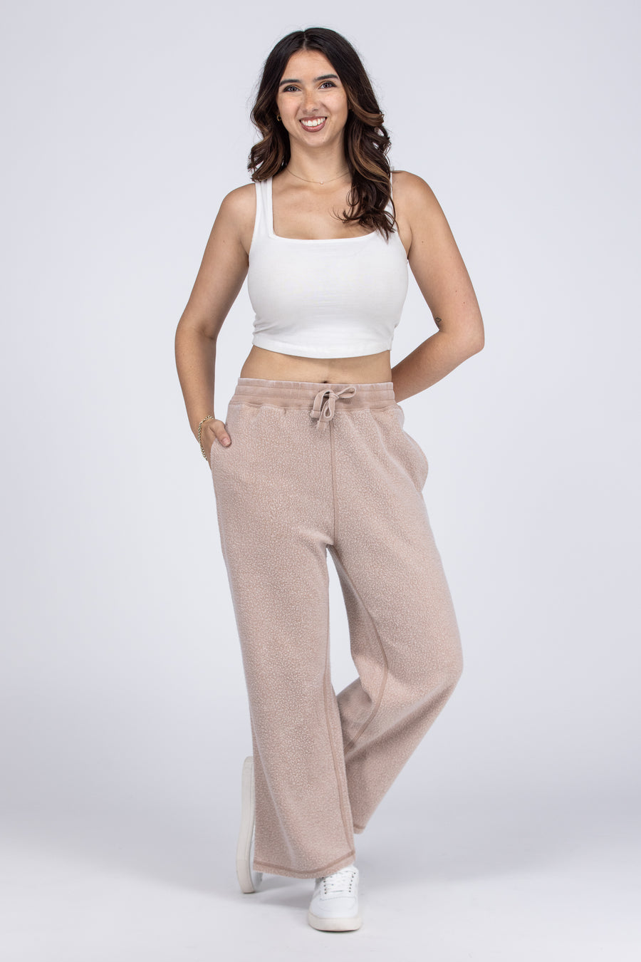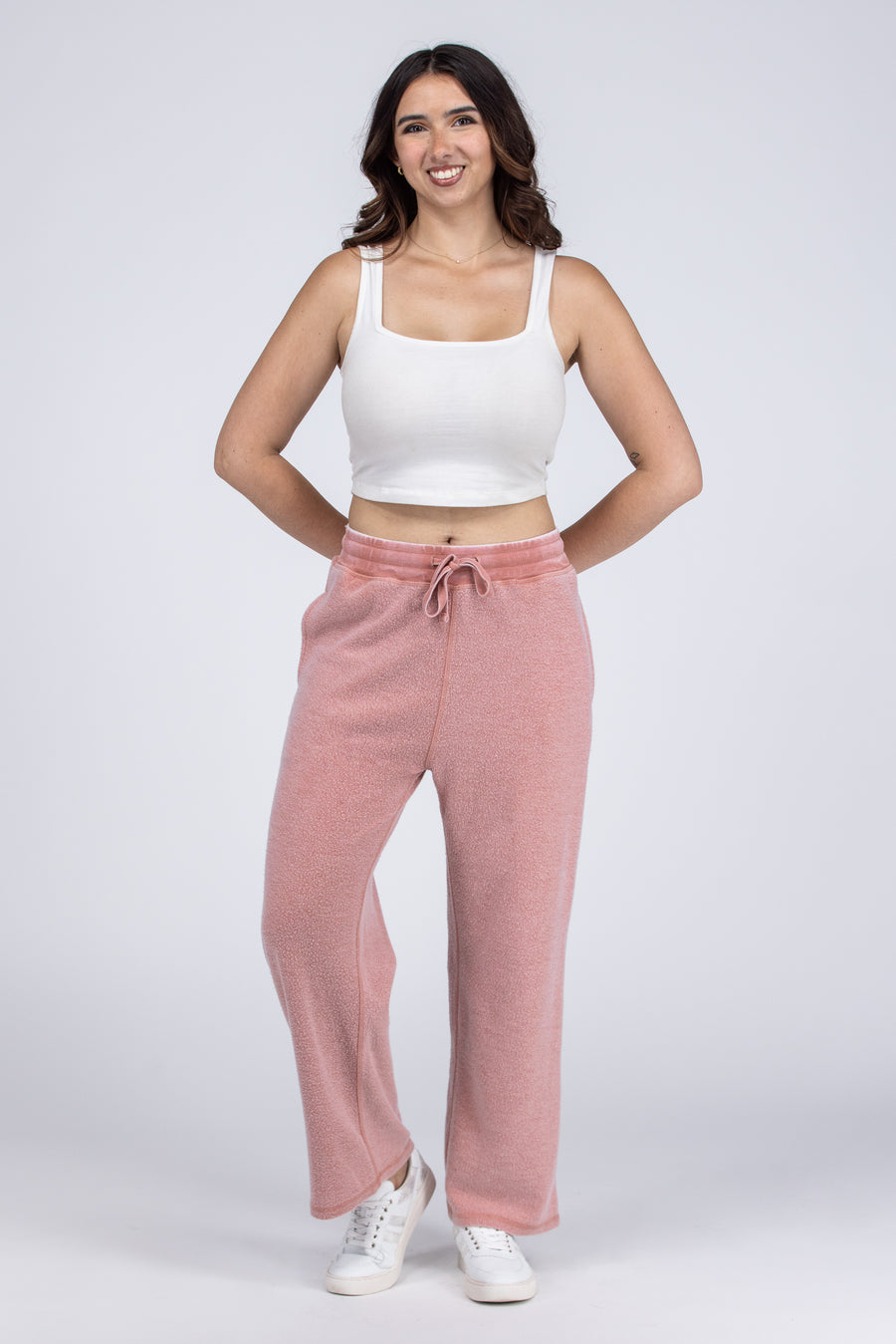 The Kickin It Fuzzy Lounge Pants by Mono B will not only keep you warm and comfy but is a great pant for running errands or dropping the kids off at school! This pant features a drawstring adjustable waist, two front pockets and non fitted, finished hem at the ankle. Wear these pants everywhere and you'll be comfy and warm all day long!