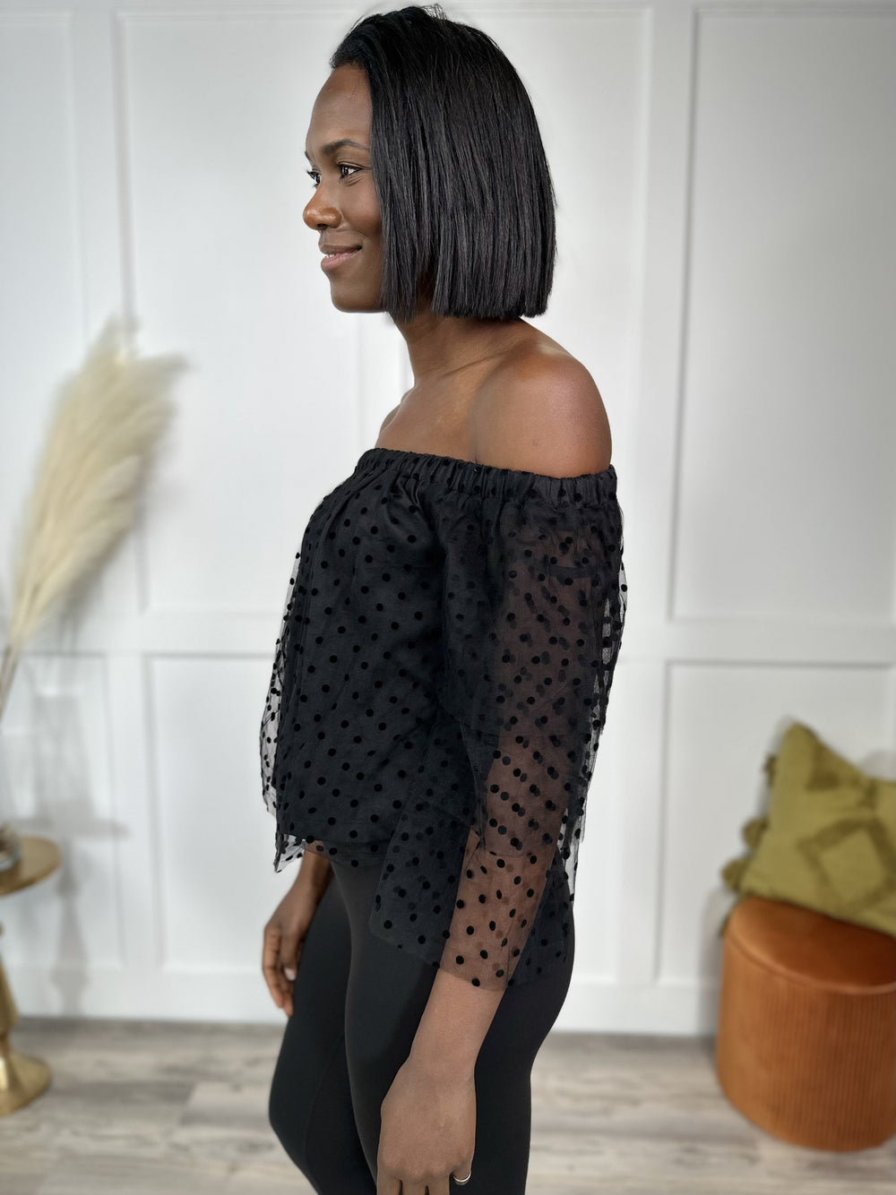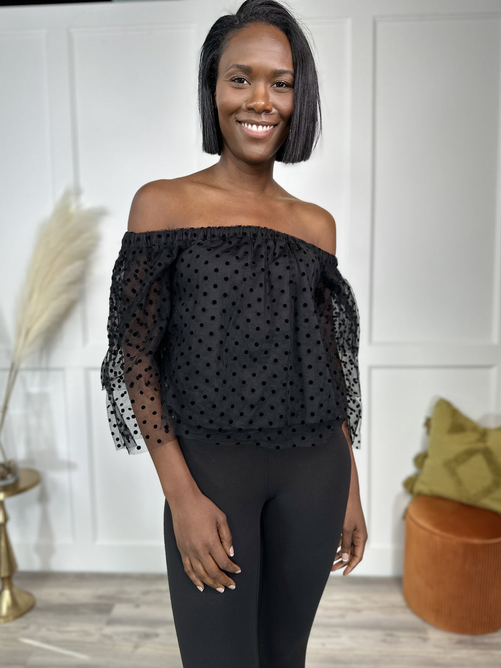 Known Beauty Women's Polka Dot Off The Shoulder Cropped Top *Final Sale*