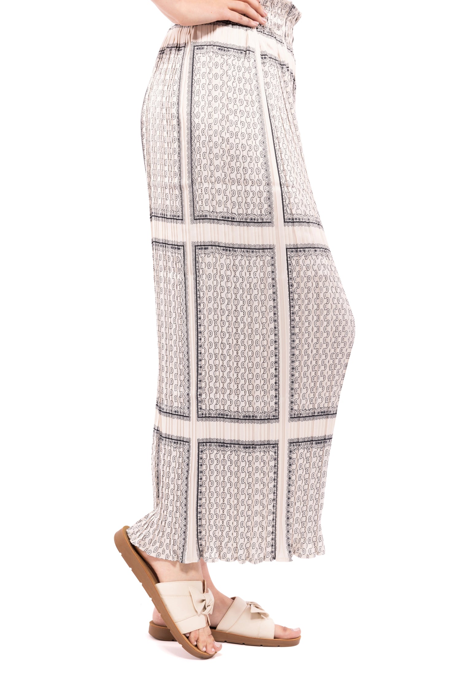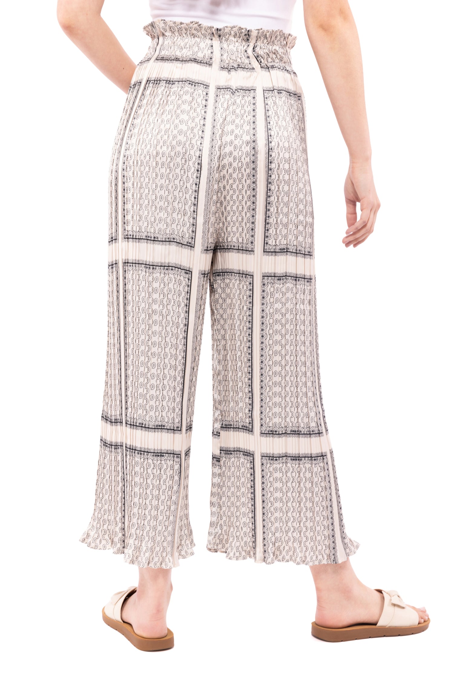 The Laffy Taffy Pants by LLove are made of a gathered silky material and features a high rise waist and flared bottoms. These pants have a thick, smocked elastic waistband for the perfect fit and wide legs for extra comfort! They have a lovely bohemian inspired paisley print all over and a loose, comfy fit.