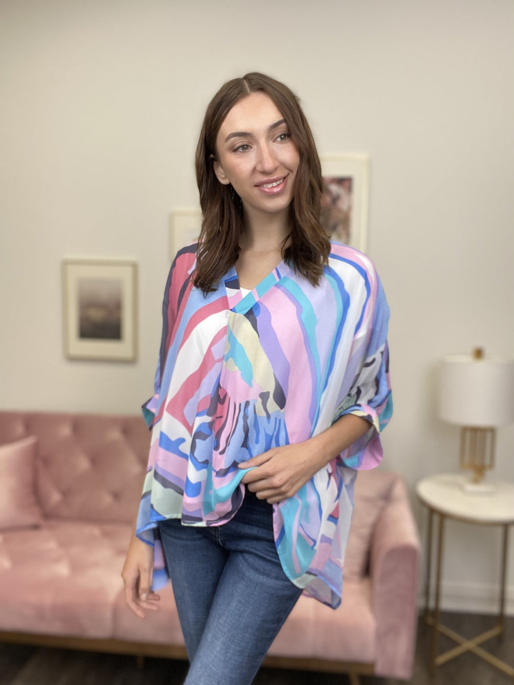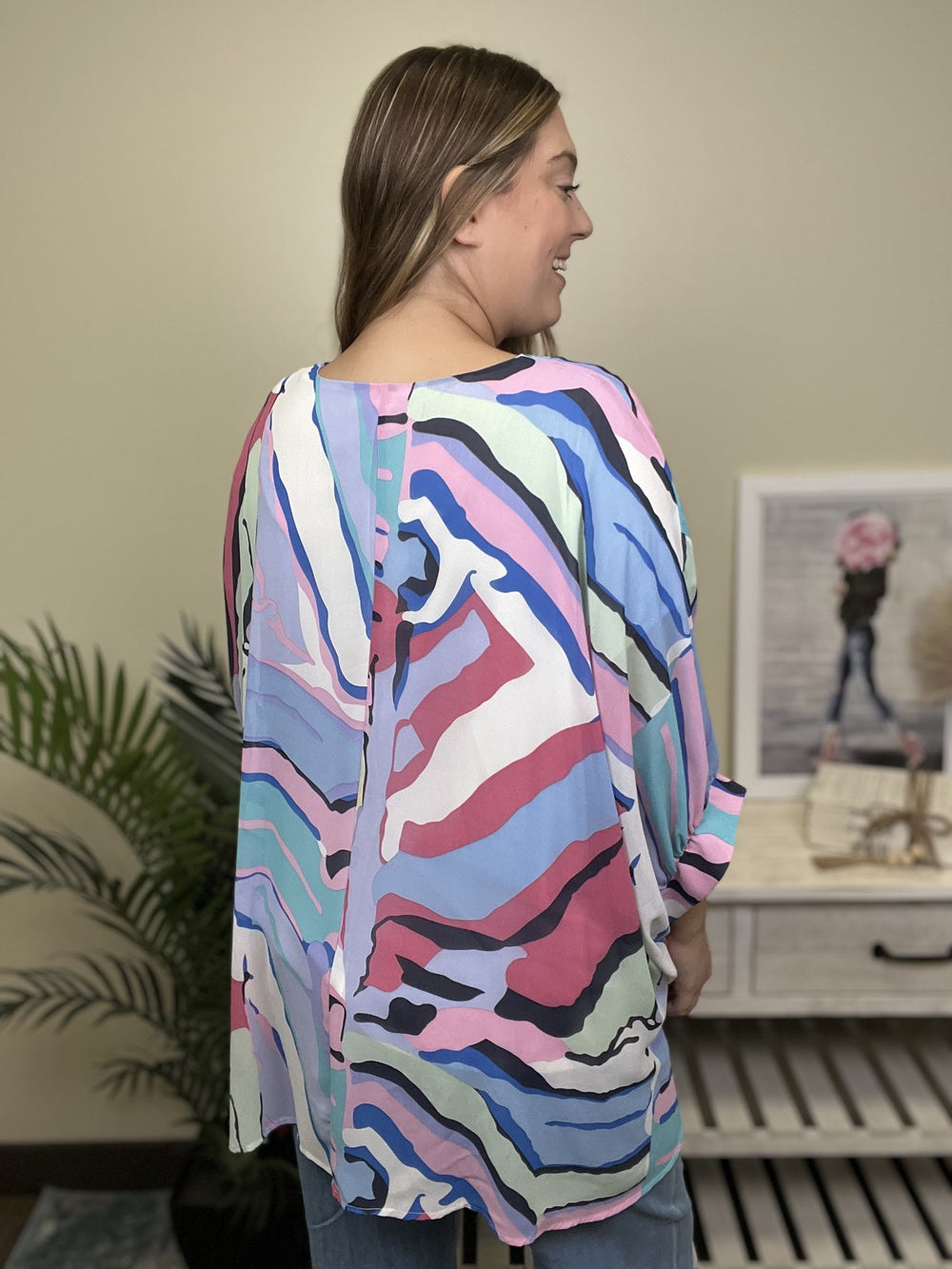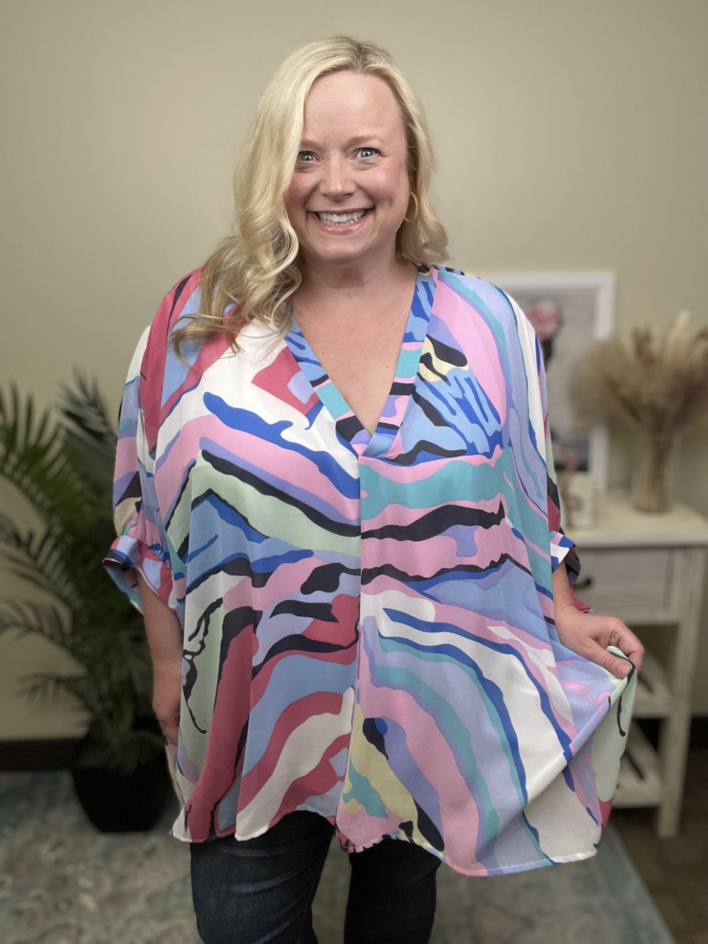 Hello warm weather, hello beach, hello cruising on the boat! The Laugh A Little Hard Top from Entro is loose and flowy top that is perfect for vacationing! It features a V-neckline, short cuffed sleeves, boxy silhouette, straight hemline, and fully lined with a tank top. Pair this with white denim pants or shorts for a breezy, summery look!