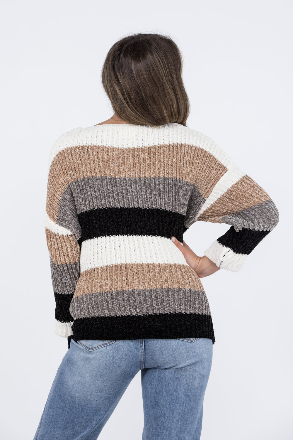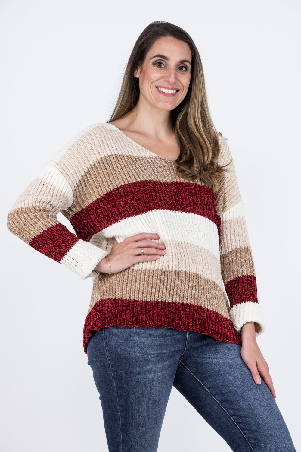 Let's Cuddle Women's Striped Knit Pullover Sweater