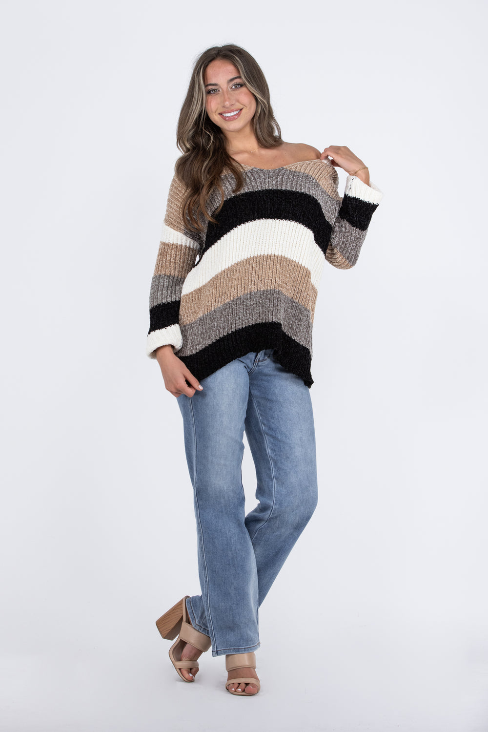 You will be nostalgic for The Let's Cuddle Sweater from Andree by Unit if you don't grab this one before it's gone! It features long sleeves, V neckline, straight hemline, warm soft knit and a stripe pattern for a wow worthy look. This pullover striped knit sweater is super adorable, you will look breathtaking when wearing this, and will undoubtedly stand out from the rest. Super trendy and easy to wear. Pair with our "Judy Blue Scarlet Dreams High-Rise Tummy Control Skinny Denim" or our "Judy Blue Moon's Awake High-Rise Tummy Control Wide Leg Crop Denim" and our "Pomela Wedge Bootie" to complete the perfect look.