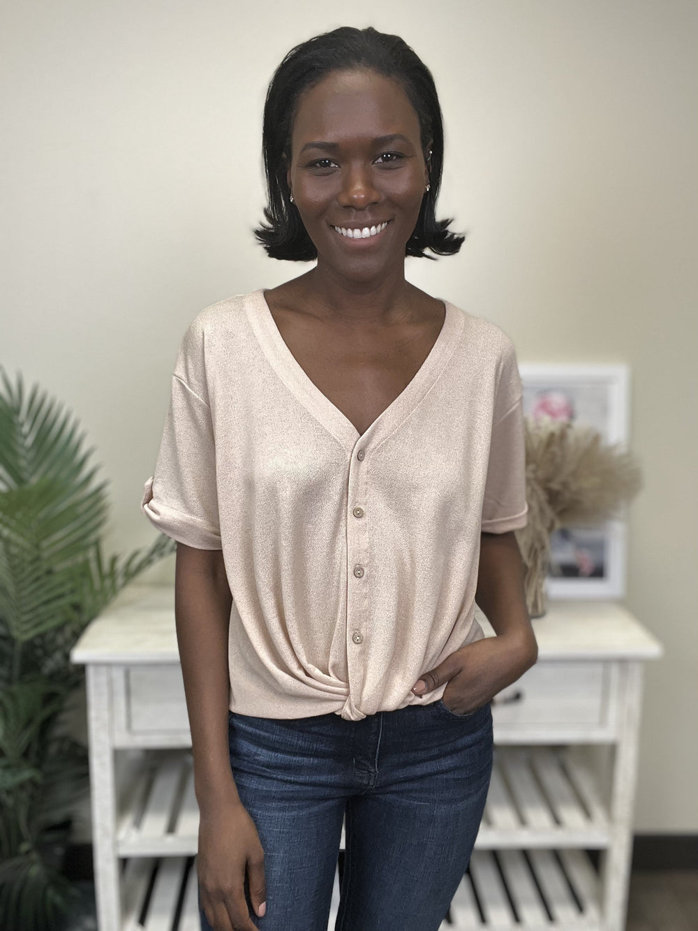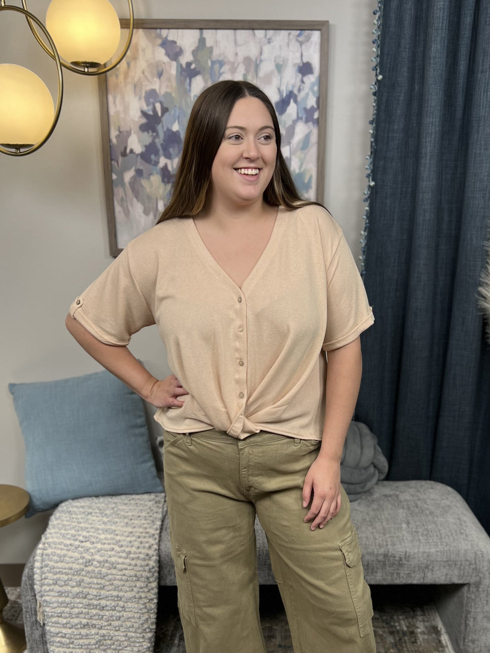 The Let's Get Twisted Top from Very J is a top with a twist! The twisted hem and button down front compliment the v neck on this cozy yet lightweight top that features a high low waist.