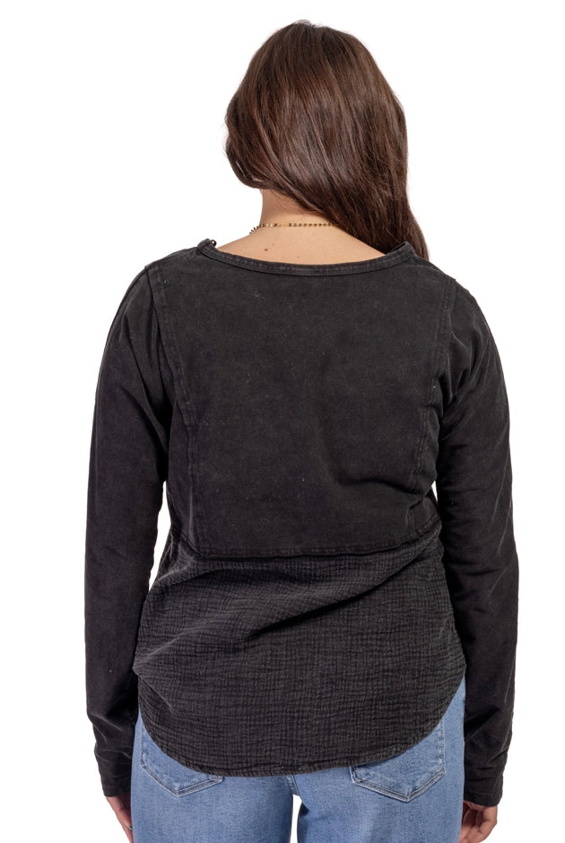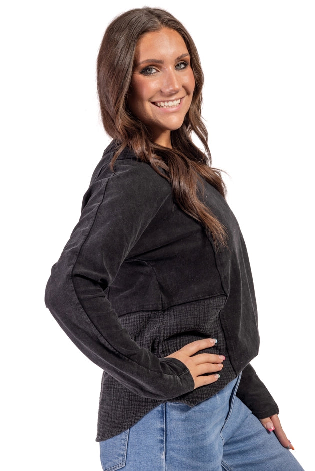 Our Women's Modern Long Sleeve Top from Heyson will have you looking for an excuse to throw a party! This long sleeve top features dolman style sleeves, contrasting fabric details near hemline, a round neckline, and a round hemline. This Women's Modern Long Sleeve Top can be worn with your favorite leggings or denim!