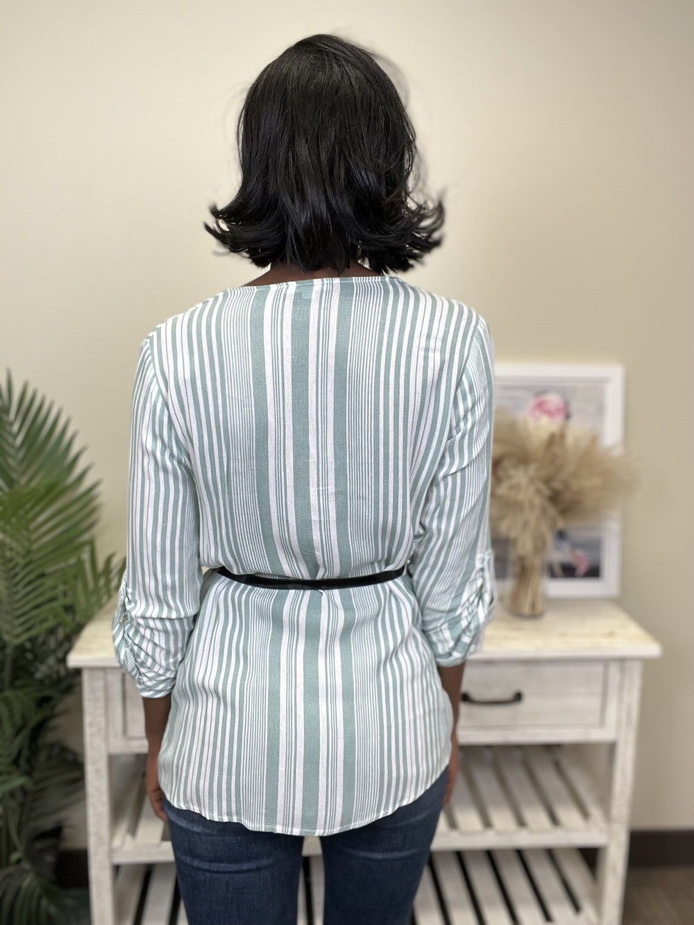 The Life Of The Party Top by Miley & Molly will make you the life of every party! This long sleeve tunic features a button up V-neck, a belt, a chest pocket, button tabs on the sleeves and a slightly rounded hem. The Life Of The Party Top can be paired with your favorite leggings or denim.