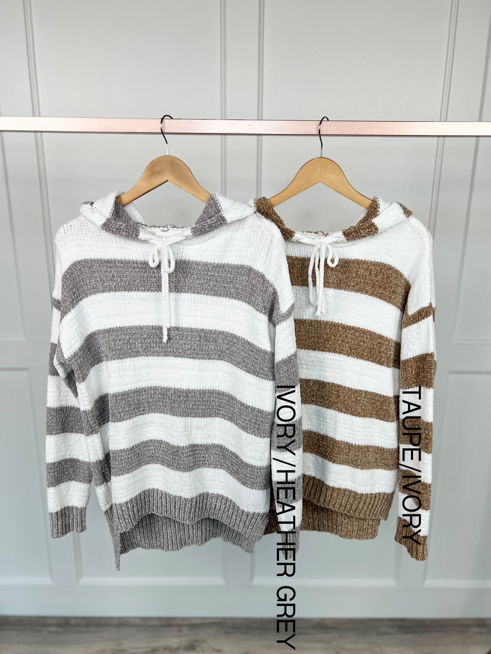 Lift Your Spirit Women's Striped Hi-Lo Hooded Sweater