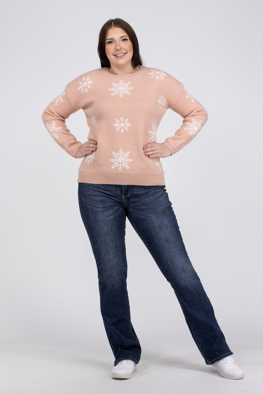 The Light Snowfall Sweater from Andree by Unit will give you the feeling of seeing the gentle fall of snowflakes on a cozy winter morning. This sweater features snowflake patterns, a rounded neckline, and long sleeves. Pair with denim or sweatpants for a cozy winter feel!