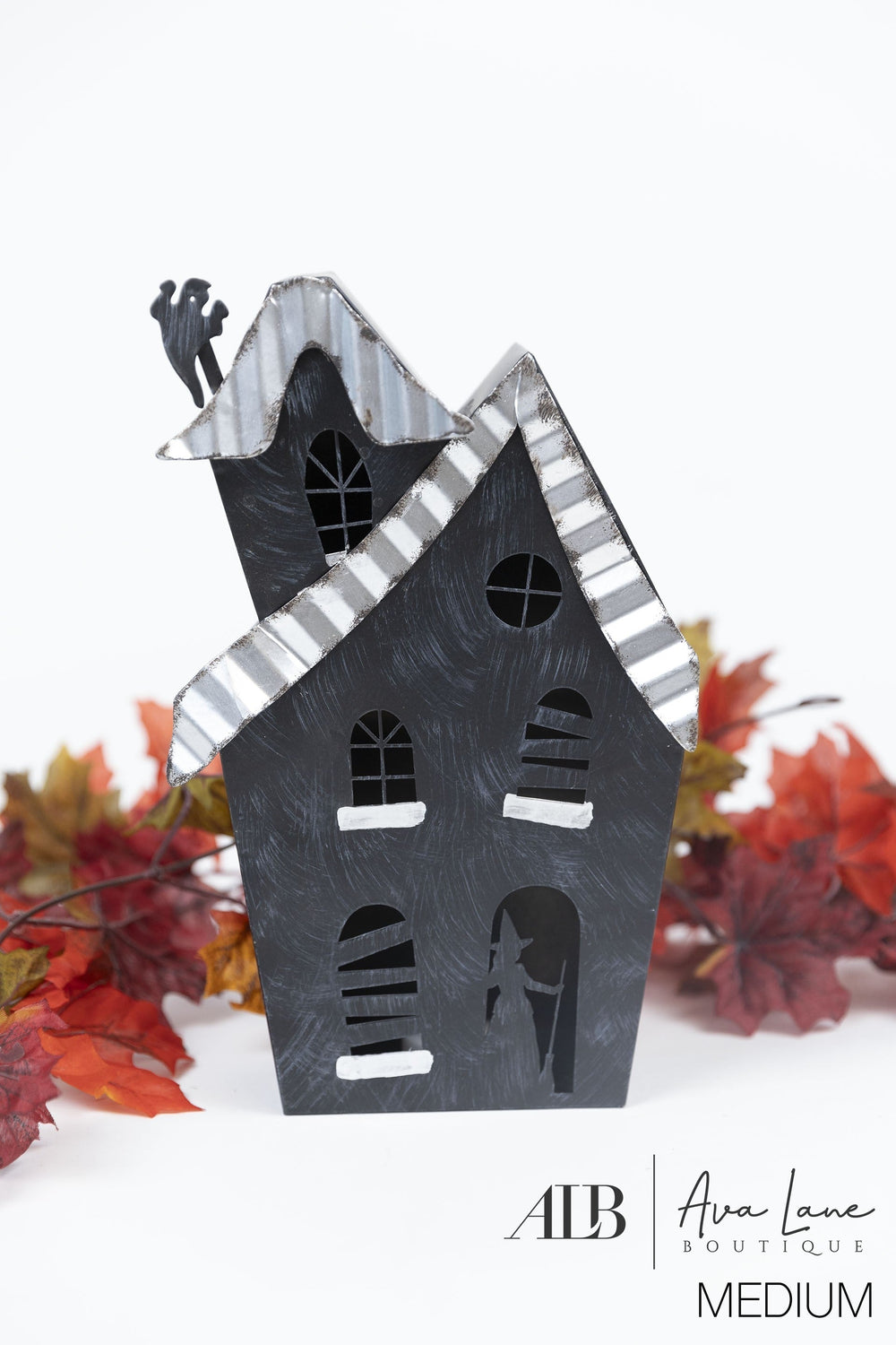 Add some spooky to your Halloween with the Lighted Haunted House Shelf Sitter from Burton + Burton. They feature distressed tin haunted houses in varied sizes. Each house is lighted to give an extra spooky feel.