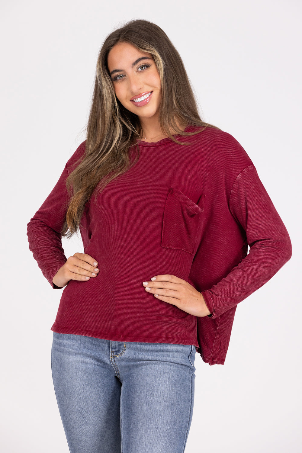 You'll get nothing but lights, camera and action in this super soft top from Zenana! This top features raw hemming, square front pocket and a lightweight, acid wash, ribbed material. Pair this on it's own with denim or layer it under a t-shirt for some added texture and depth to an outfit!