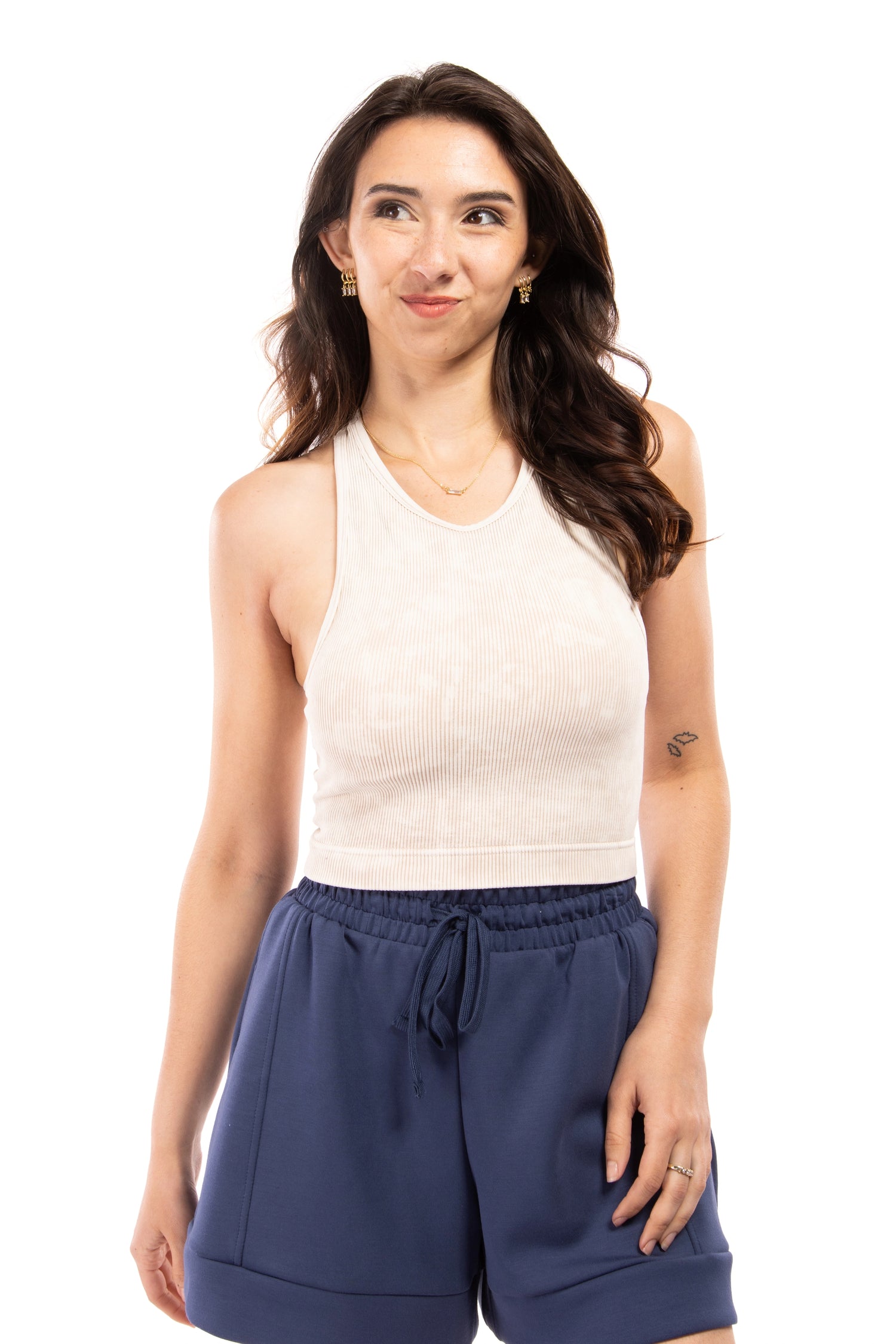 The whole day is harmonious in the Line of Harmony Bralette from Zenana. This bralette features a ribbed pattern, seamless material, racerback design, and removable padding. Pair with a cardigan and shorts for a relaxing day at home or a cozy day of errands.