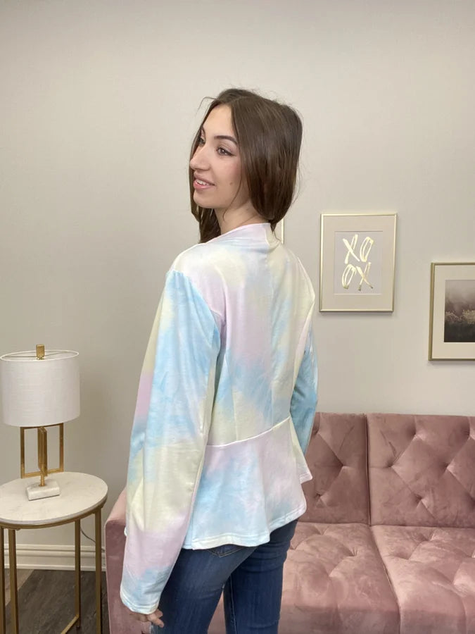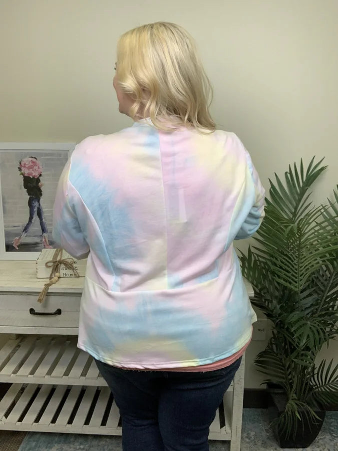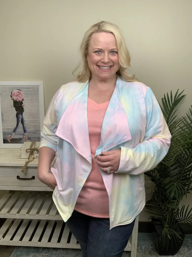 The Llama Mmama Jacket From Andree By Unit is the jacket you thought you didn't need to have, but you do!! It is a lightweight transitional jacket in tie dye pattern! It features long sleeves, side pockets and open front. With it's slightly loose fit and stretchy knit material, this jacket is perfect to layer with basics and your favorite denim! Pair with are "Meet Me In Cali Denim" for something cute fun and spring/summery!