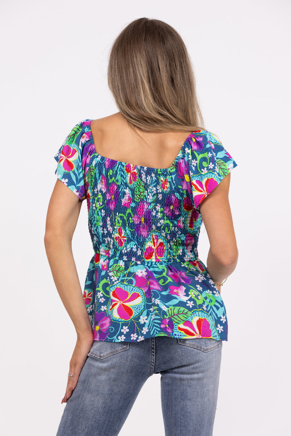 Lost In Flowers Top by Emily Wonder will bring on smiles when you put it on because it will make you feel so happy. Features a stretchy Florentine neck, flutter sleeves, smocked bodice, flair bottom. Pair it with jeans, skirt, shorts, with heals, wedges, flats, boots. Have fun in it by dressing it up or down for a day or night out.