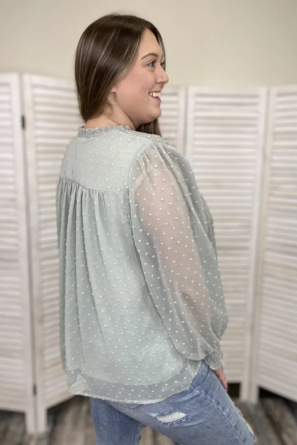 Lots Of Fun Women's Semi-Sheer Swiss Dot Long Sleeve Top *Final Sale*