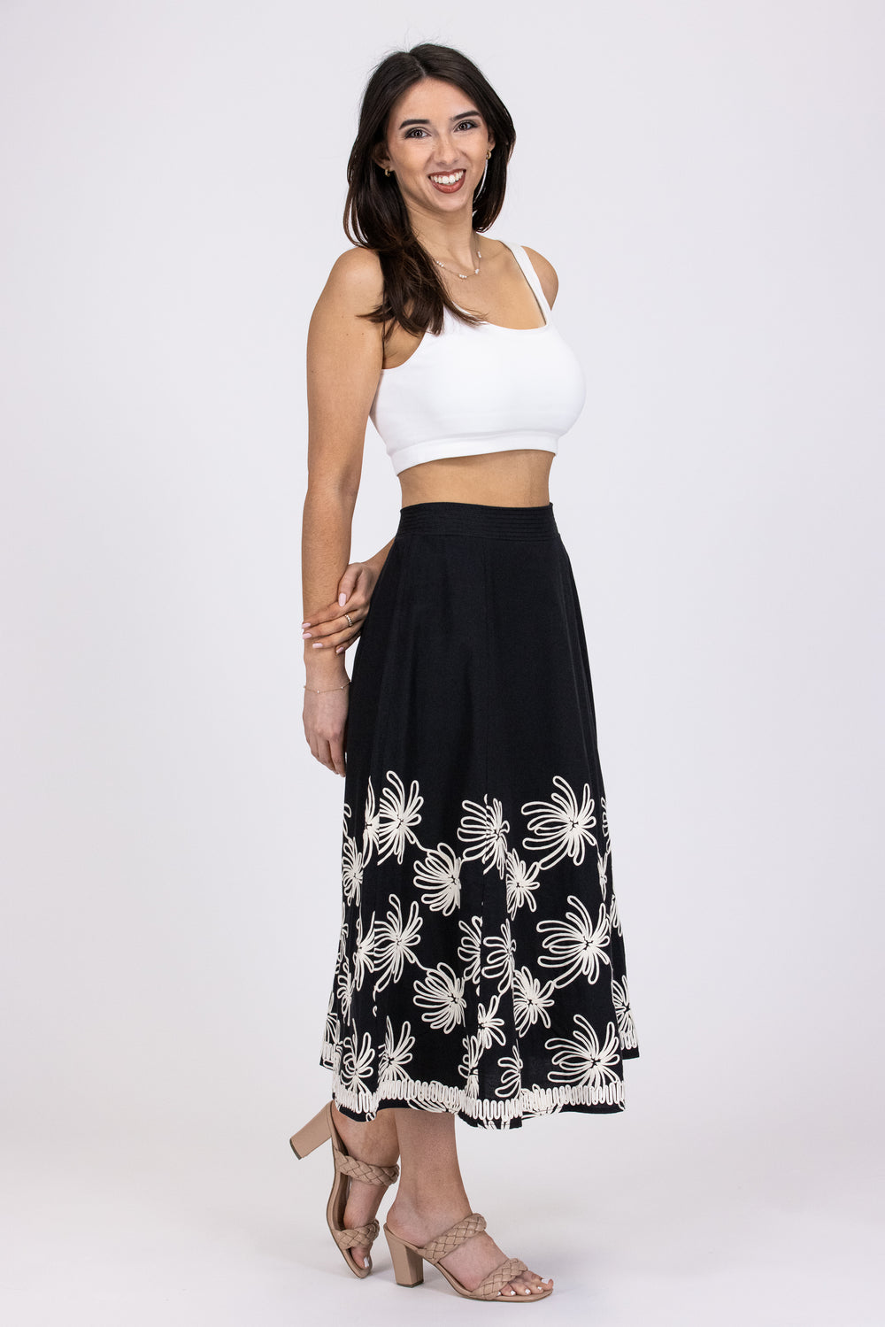 Love In Bloom Women's Floral Embroidered Midi Skirt