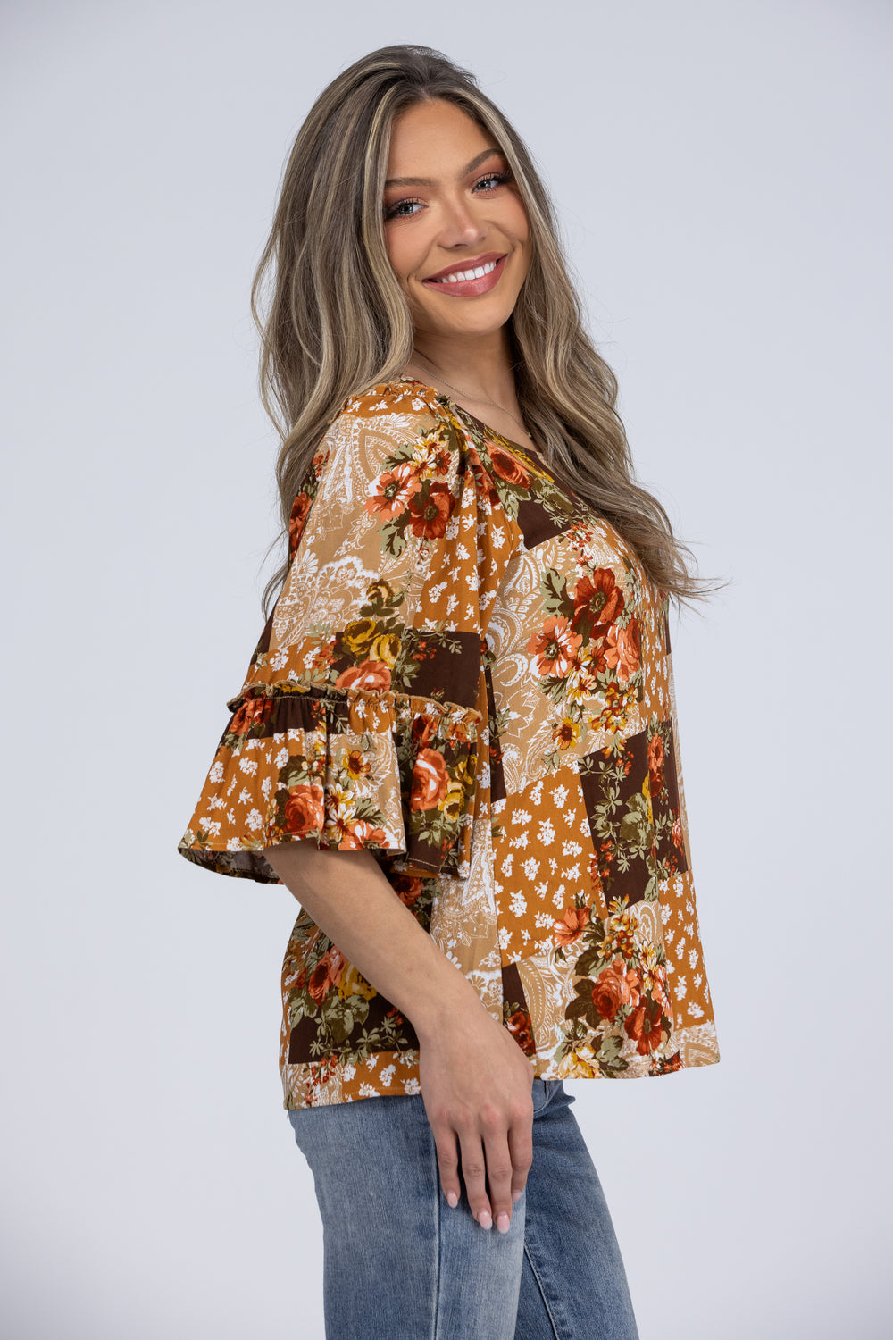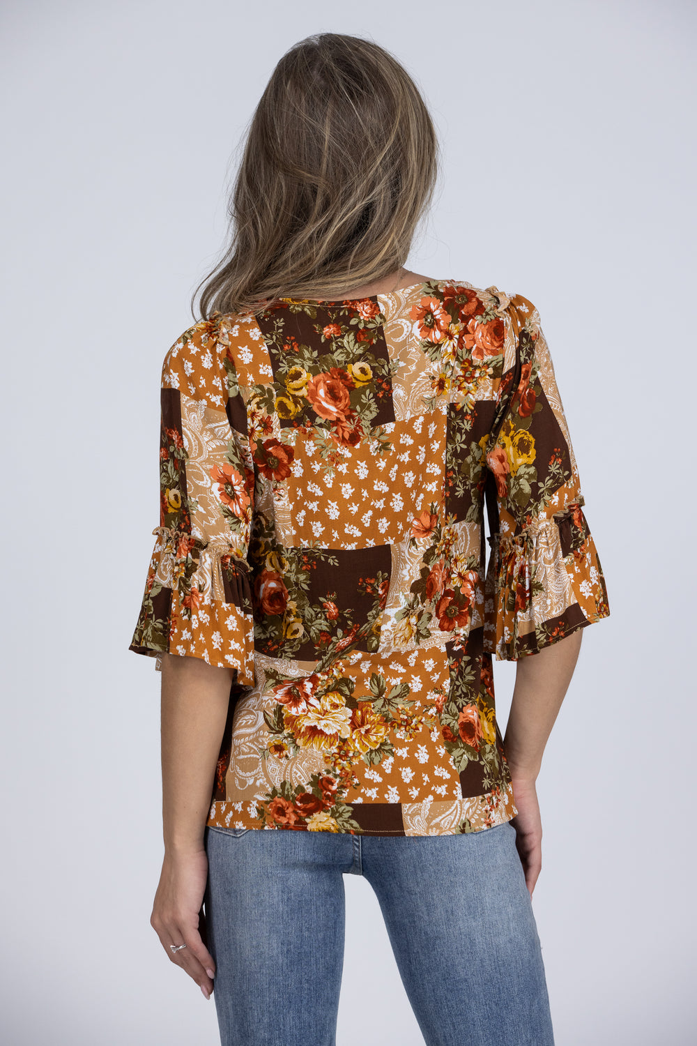 Love Me Like That Women's Flowy Patchwork Print Blouse Top * Final Sale*