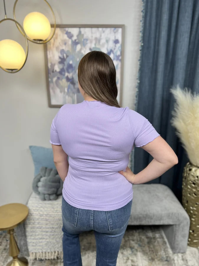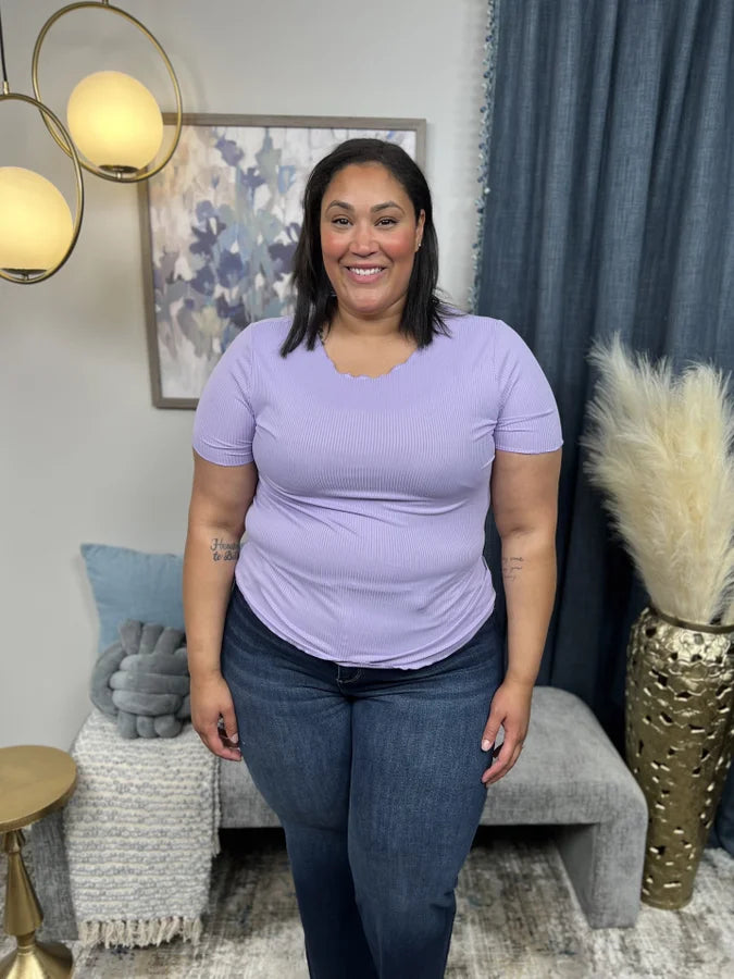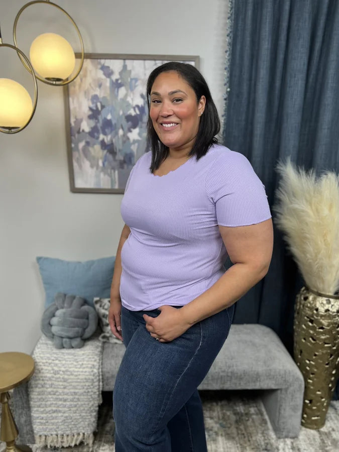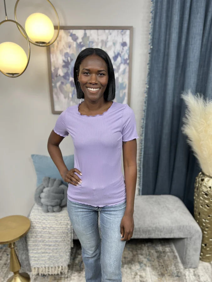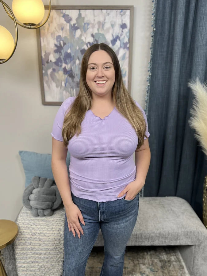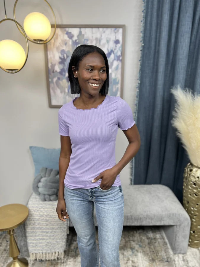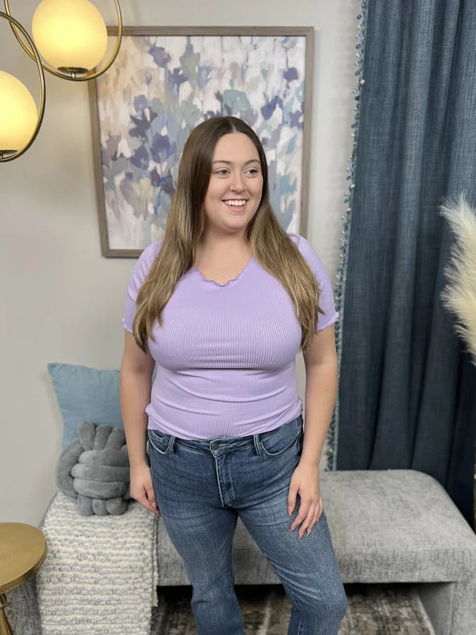 Love Notes Women's Ribbed Knit Lettuce Trim Top