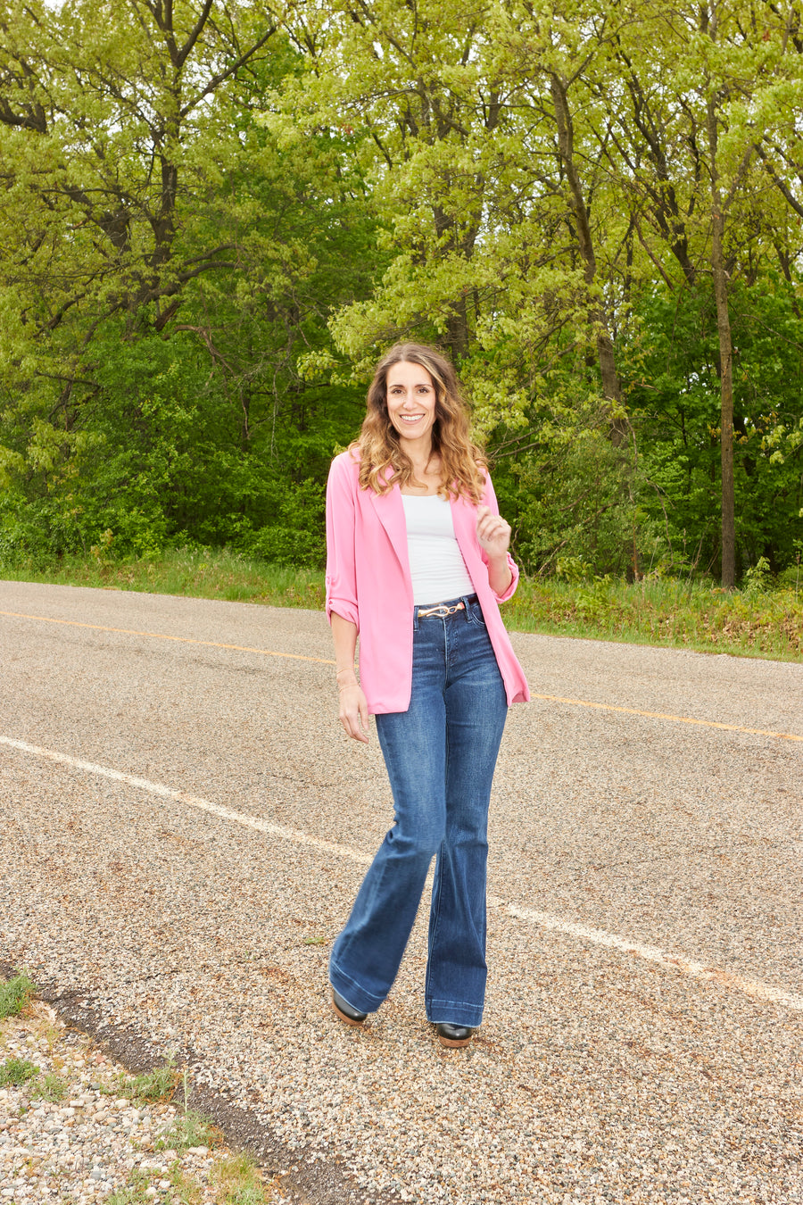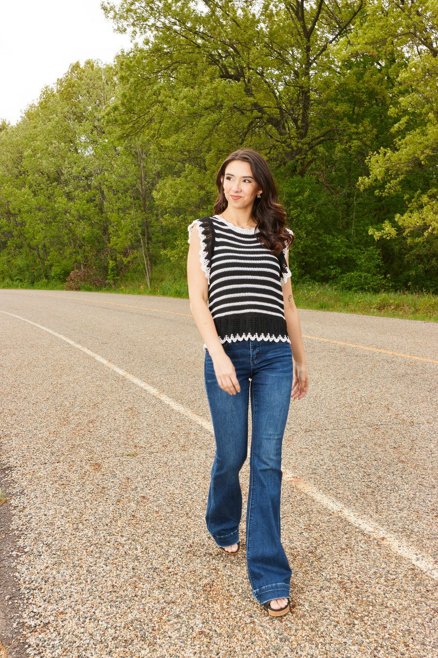 - Minimal Distressing: Along the edges of the waist and hem to add character to the dark wash denim.