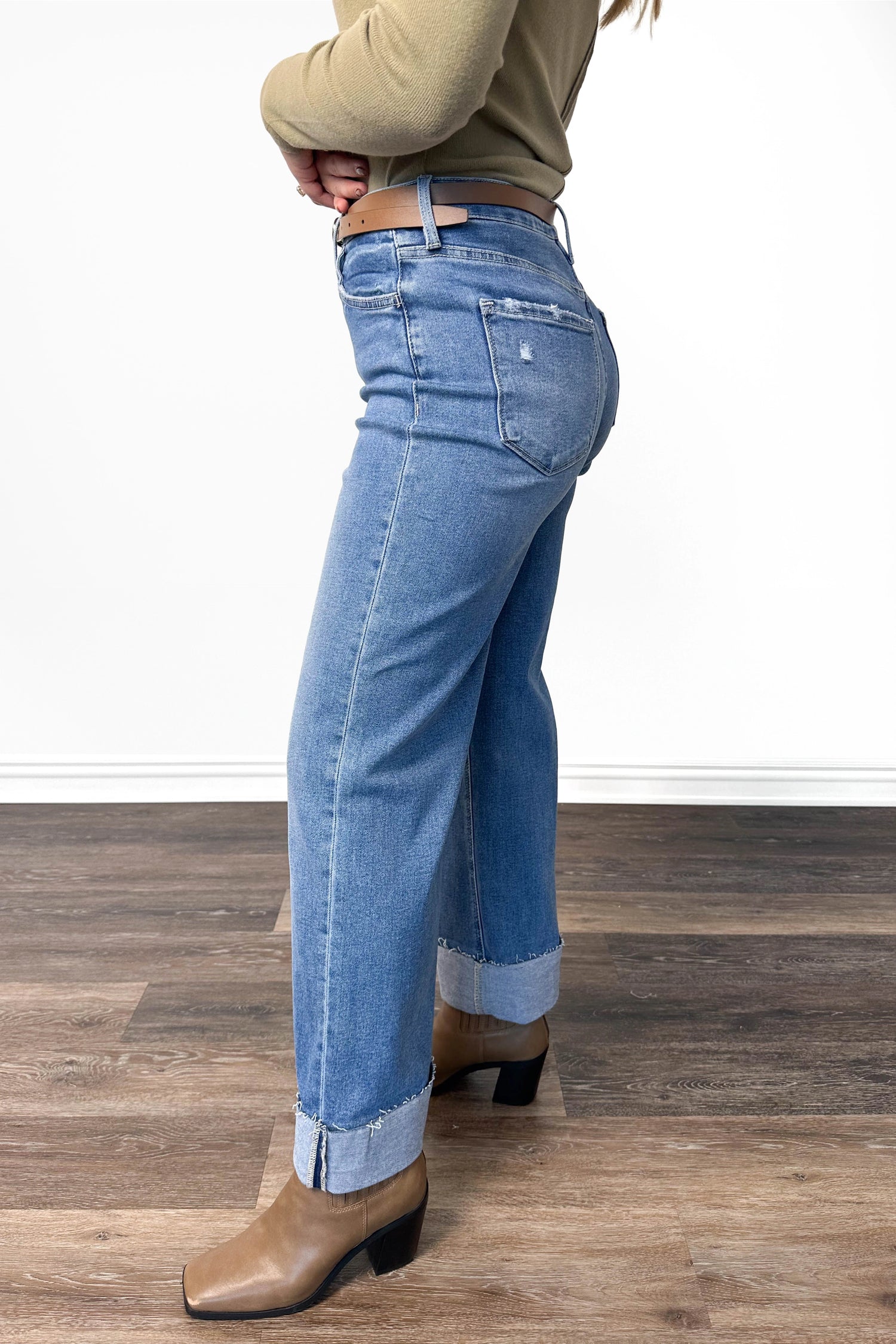 The Kiara from Lovervet: Super High-Rise Wide Leg Cuff Denim