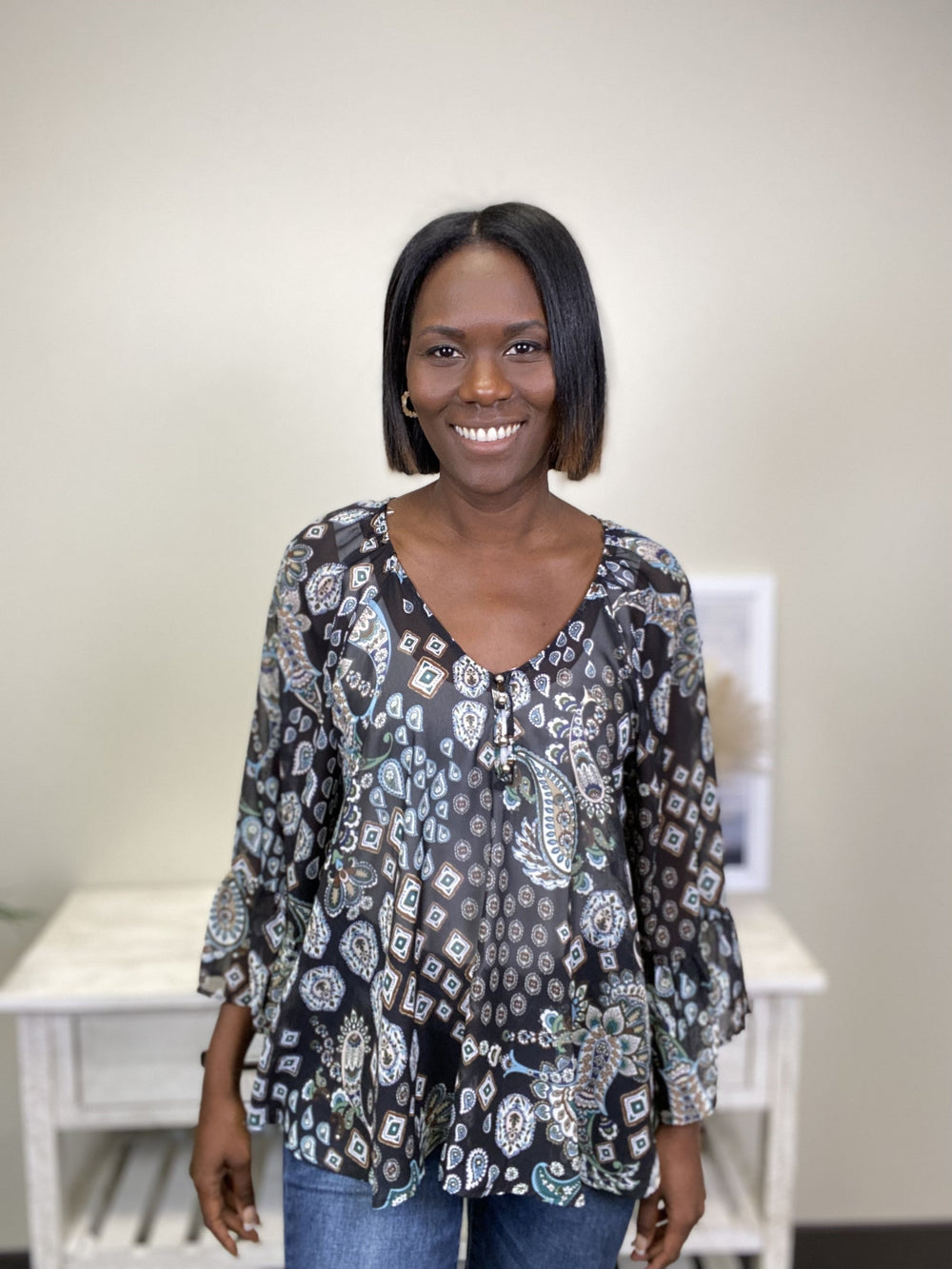 Loving Me Women's Paisley Ruffle Long Sleeve Top *Final Sale*