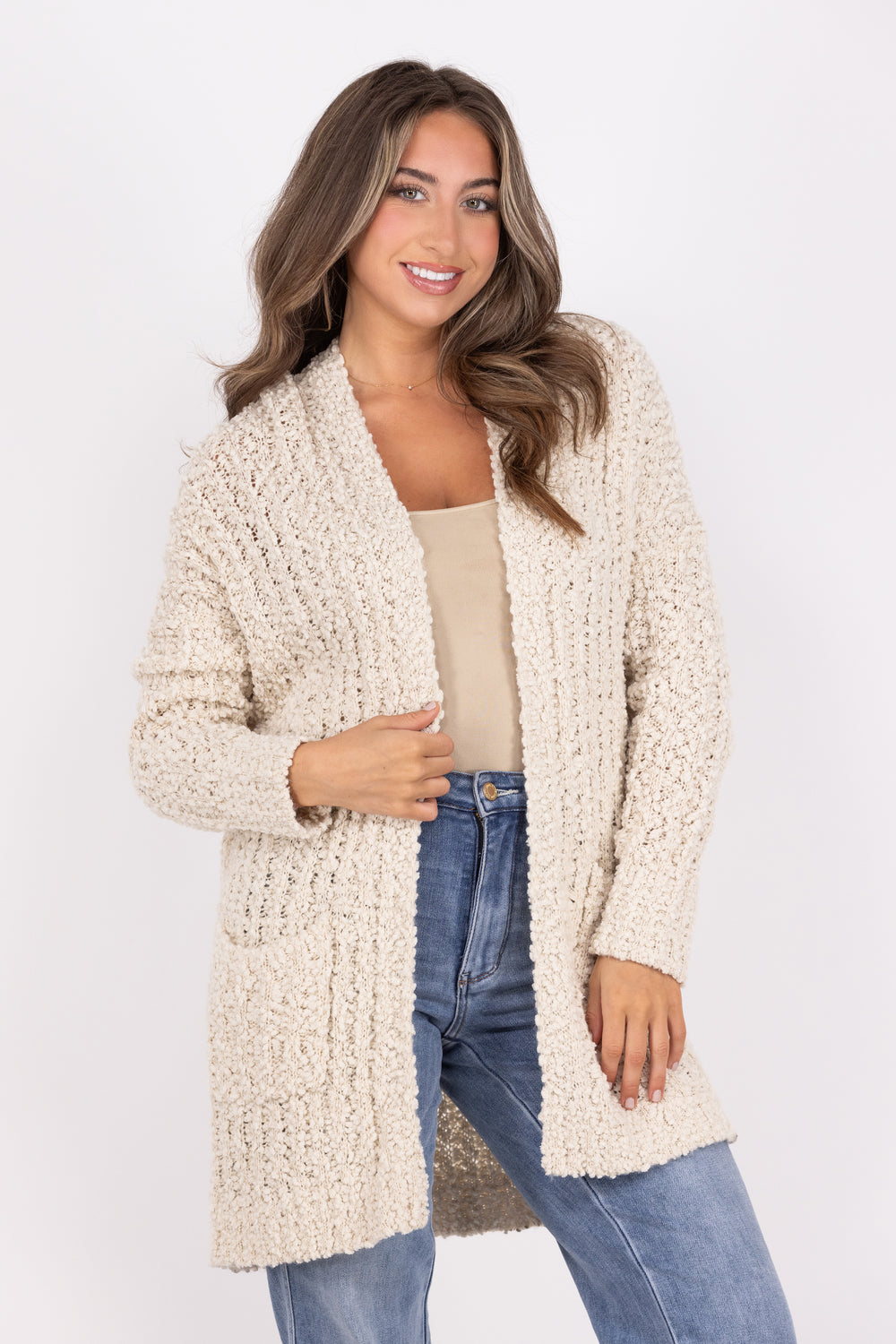 Make Your winter extra stylish with The Made For Style Cardigan from Miracle. It's so cute and features an eye catching cozy popcorn fabric on an oversized silhouette that is framed with cozy long sleeves and front pockets. Open front style is perfect for layering and to keep yourself warm as well as easy on and off wear. Pair with your favorite tank or top underneath and denim or leggings!