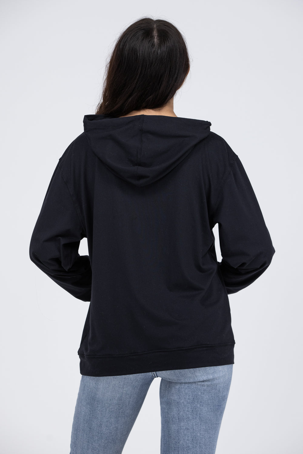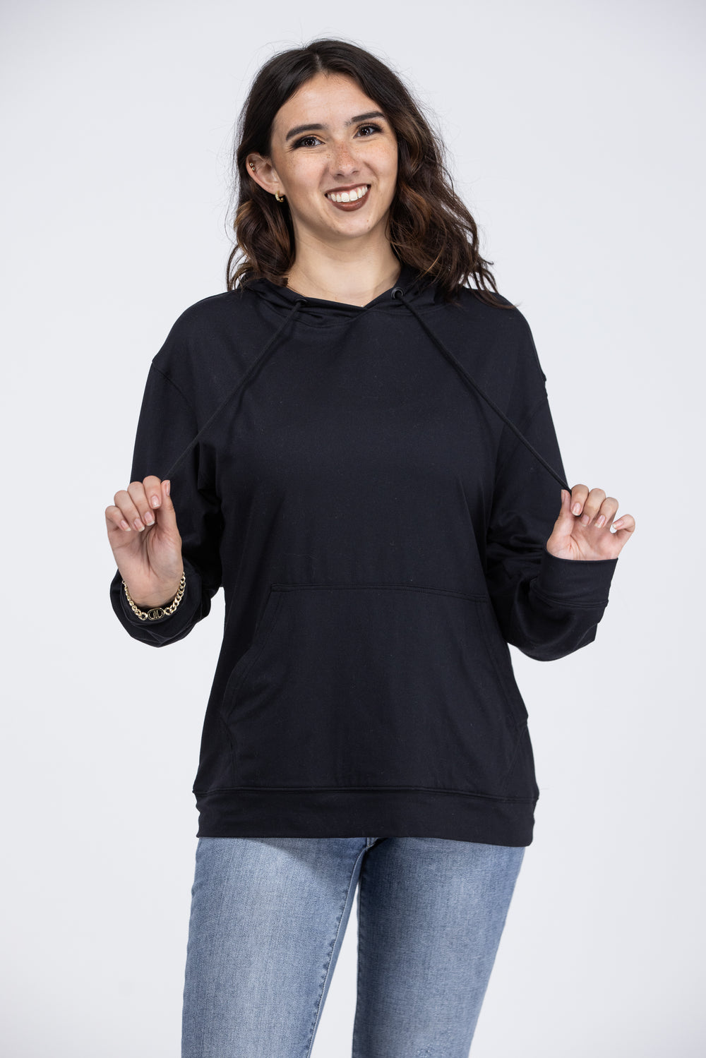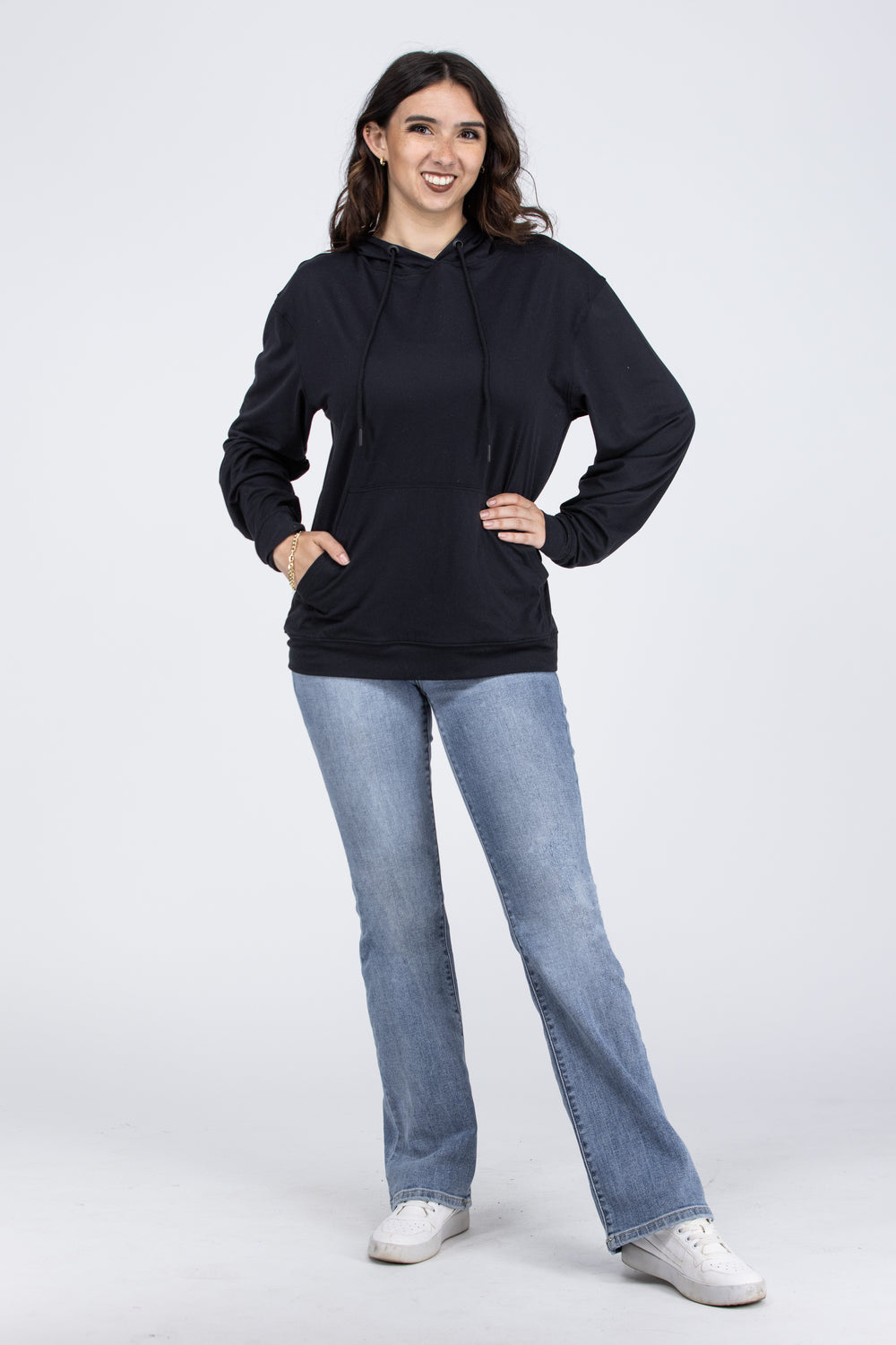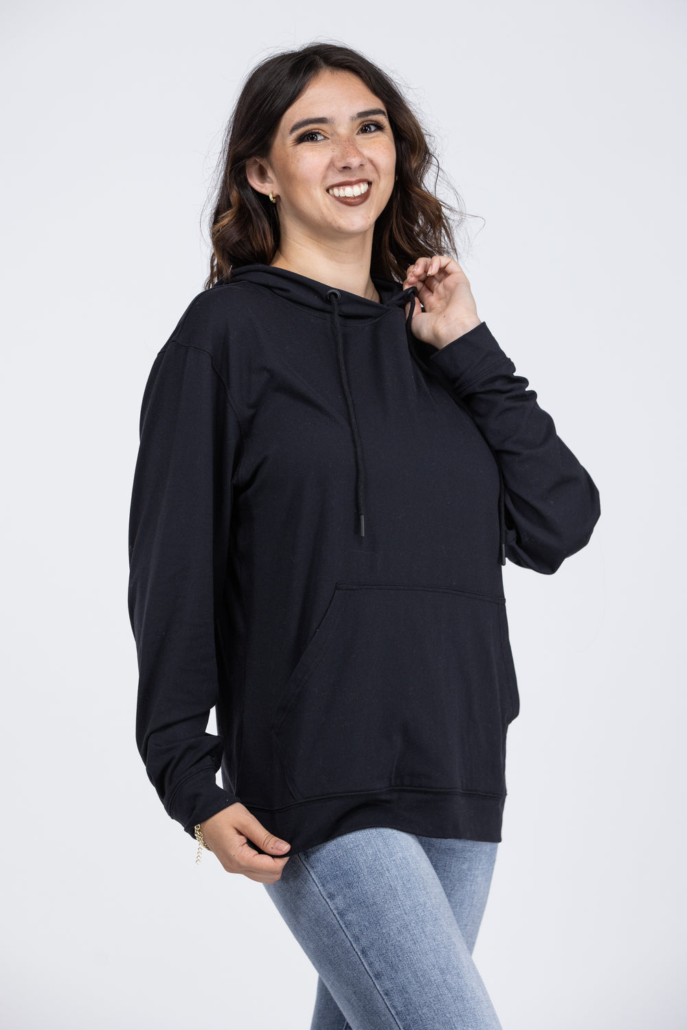 The Men's Jumping In Hoodie by Mono B will be the best thing you purchase for spring! This thin hoodie is great for both warm and cold wear. It features a hooded neckline with functioning drawstring, front pouch pocket, long cuffed sleeves, and a straight banded hemline. Layer this below a tee or on it's own!