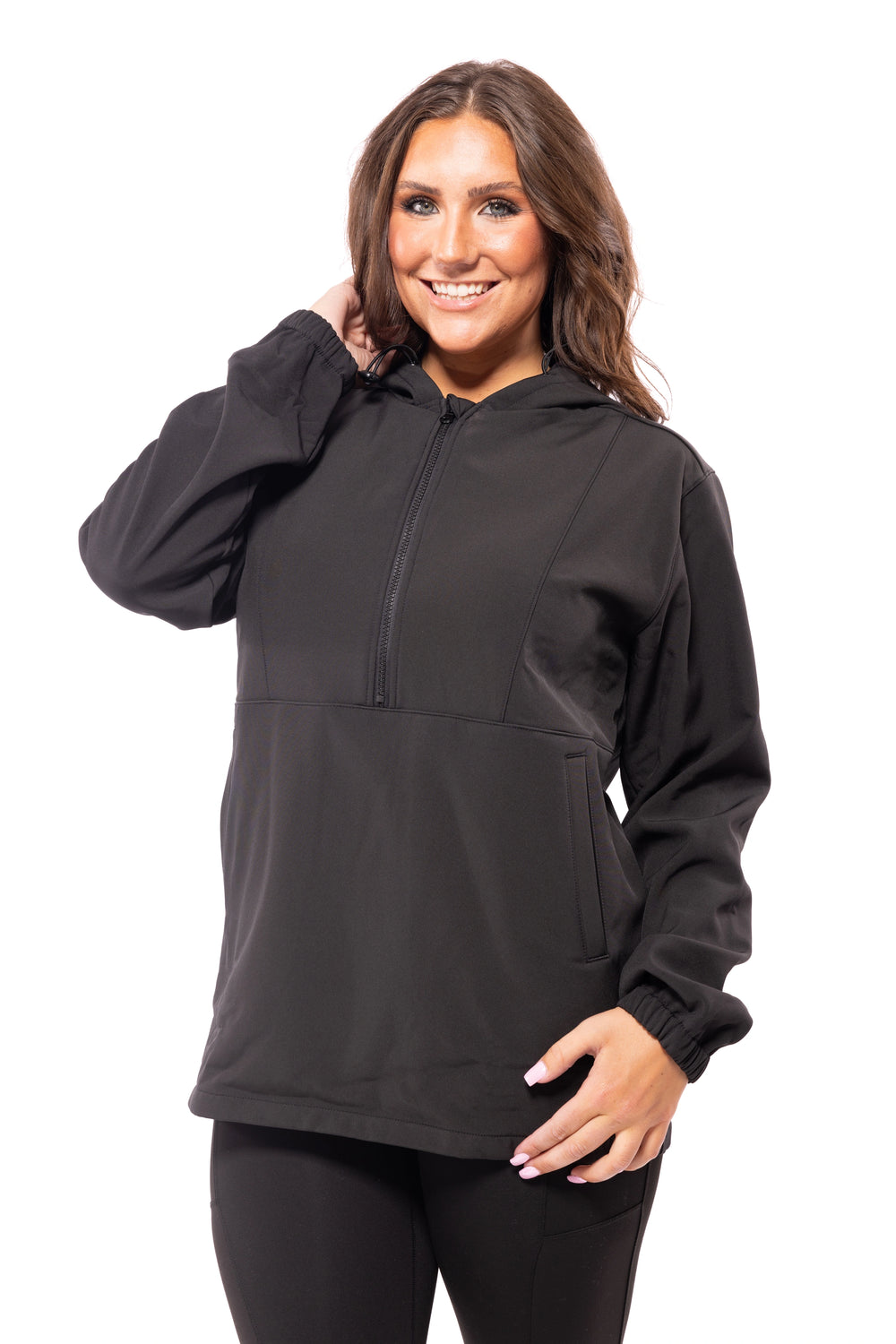 The Men's Rain Or Shine Pullover by Mono B is a must have. This pullover features a polyester-spandex fabric on the outside and a polar fleece on the inside to protect you from the cold. The Men's Rain Or Shine Pullover also features pockets, a half zip closure, and a hood with a functioning drawstring closure.