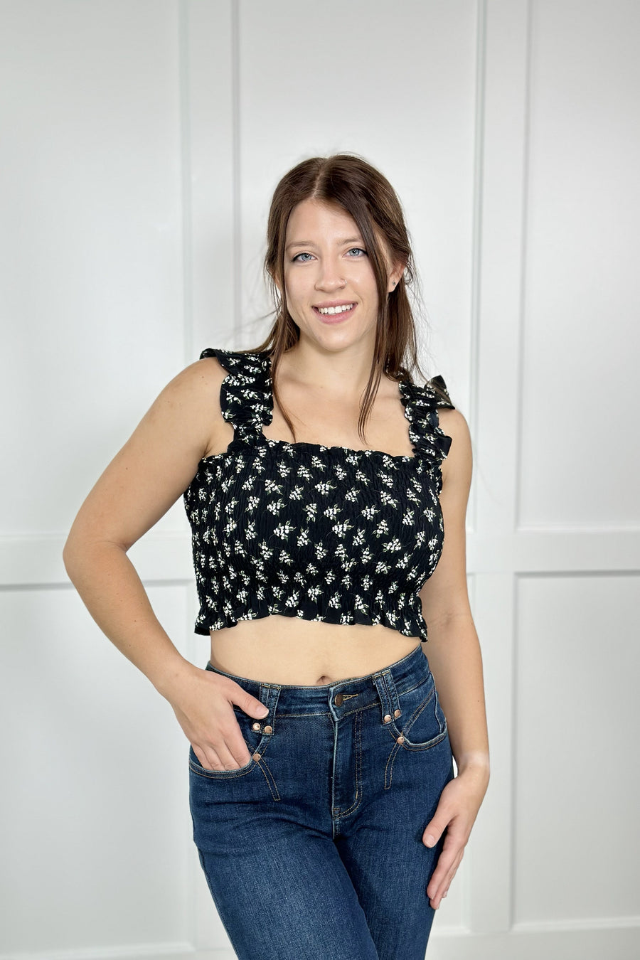 No need to get your feathers in a ruffle, there's enough of the Miki Ruffle Bralette from By Together for everyone! You won't be able to resist this stylish bralette! The Miki Ruffle Bralette features a tube top bodice with a delicate floral pattern and ruffled short sleeves. This top looks great with denim shorts or layer over top a snug-fit long sleeve shirt to add some depth to your outfit.