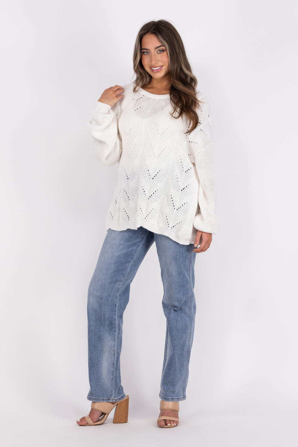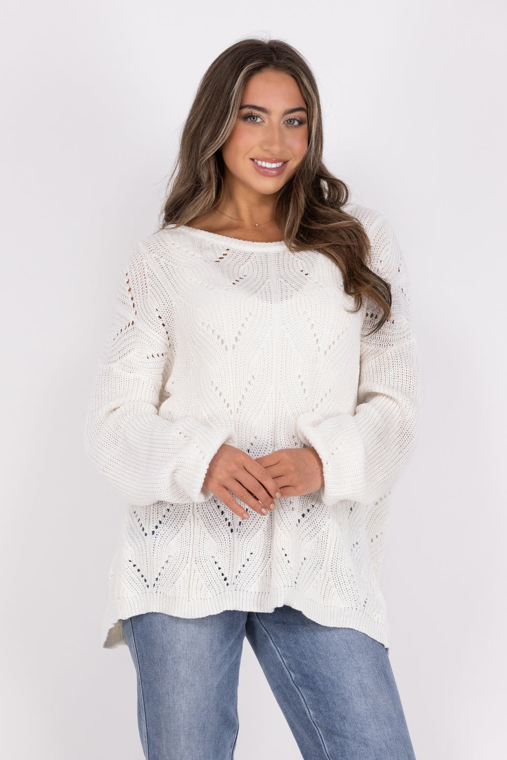 The Moving Mountains Sweater is great for layering when you are running errands around town. It features ribbed cuffs, hem and collar, along with an open knit design and a split back. Pair with a lacy tank or bralette and your favorite denim for a day out.