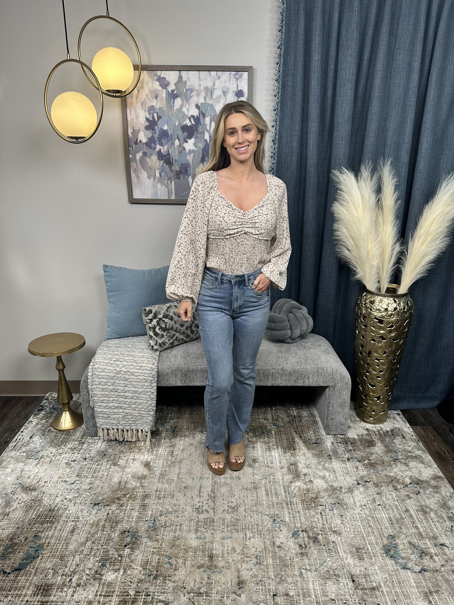 You’ll be saying “my oh my” when you slip into this stunning body suit by Heyson. This one-piece wonder features a flattering v-neckline, bubble sleeves, and a smocked waistband that accentuates your curves. The floral print adds a touch of romance and femininity to your look. Whether you pair it with jeans, skirts, or shorts, this body suit will make you feel fabulous and confident.