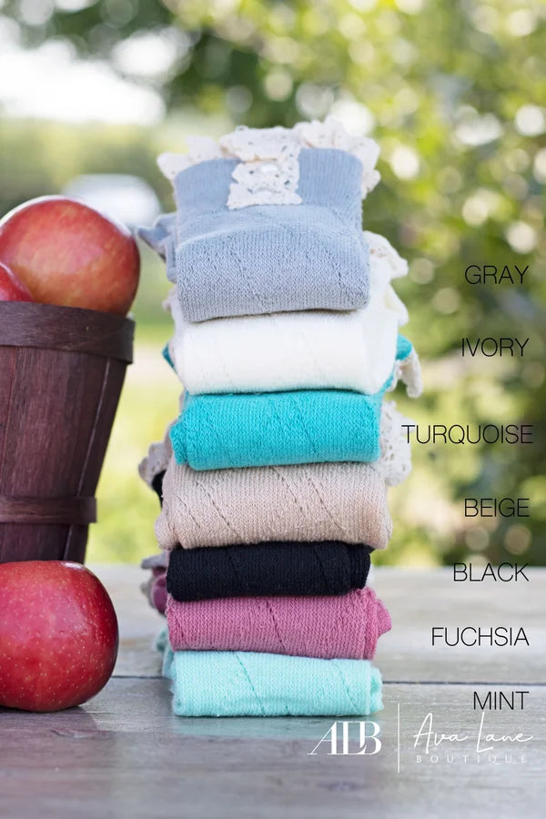 Don't you love pairing your fall boots with cute socks? We do too! The Need 'Em Knee High Socks are a knit sock with lace around the top and two decorative pearls. These socks look great with knee high boots where the lace can peek out the top!