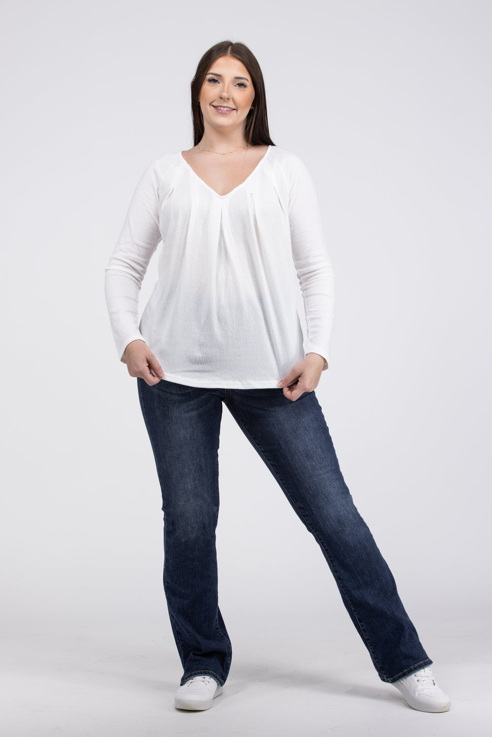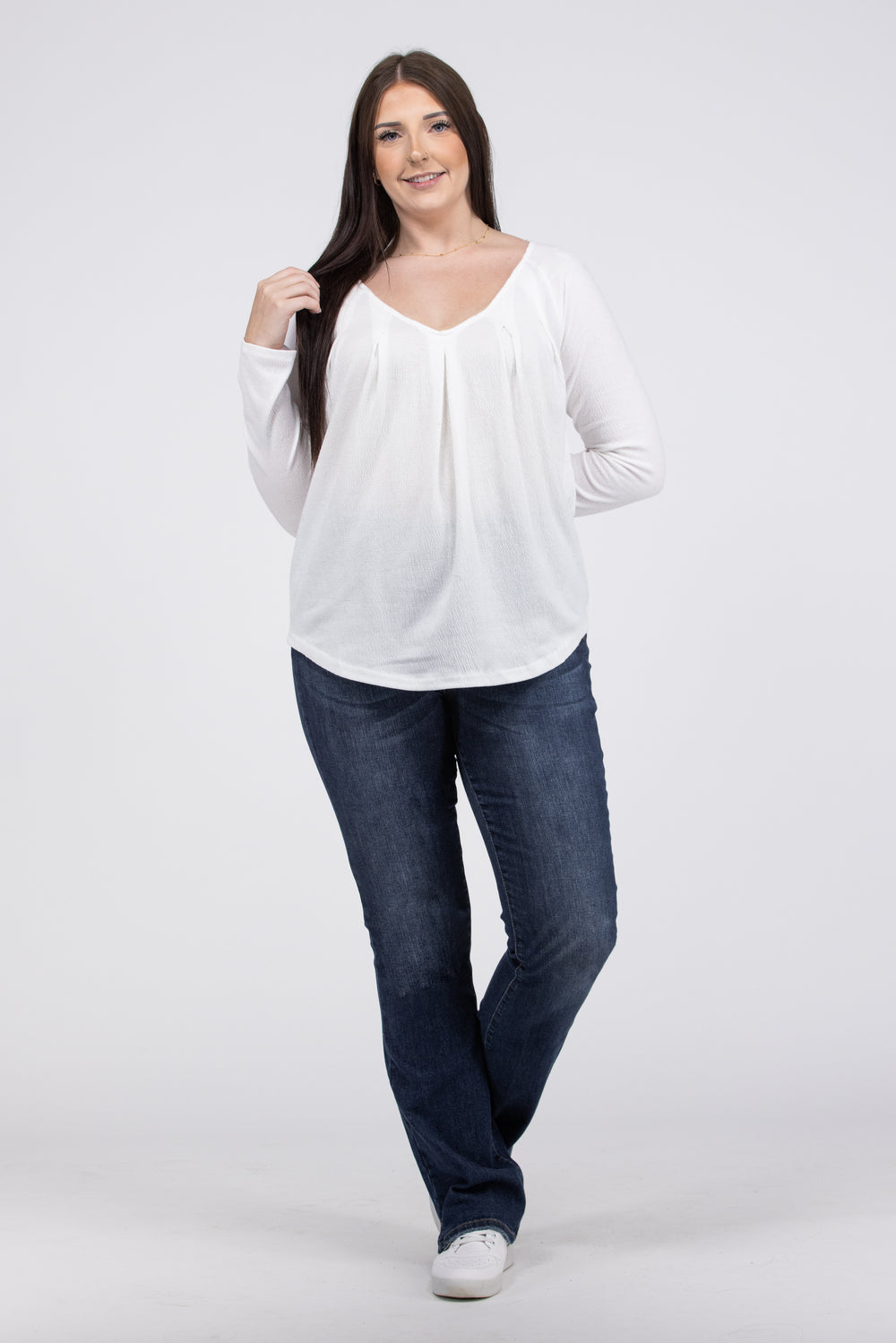 Never Back Down Women's Pleated V-Neck Long Sleeve Top *Final Sale*