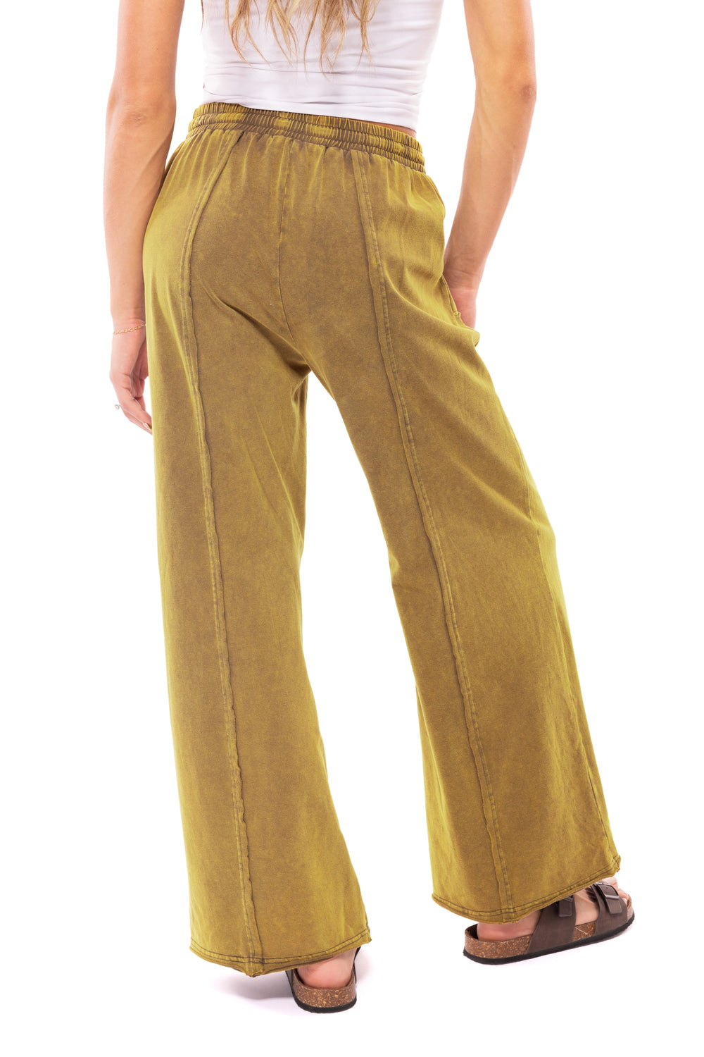 Kick off the day in comfort and style with The Never Holding Back Pants by Heyson. Slip these on and enjoy a day of lounging on the couch or running errands for the day. The Never Holding Back Pants feature an elastic waistband with functioning drawstring, pockets, wide leg, washed fabric and raw edge details. Pair these with some fuzzy slippers and relax! Or pair with a fitted tank or bodysuit with a zip up hoodie or denim jacket and head out the door!