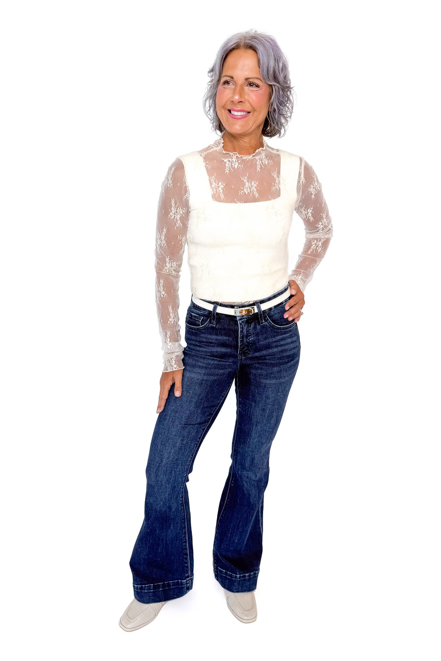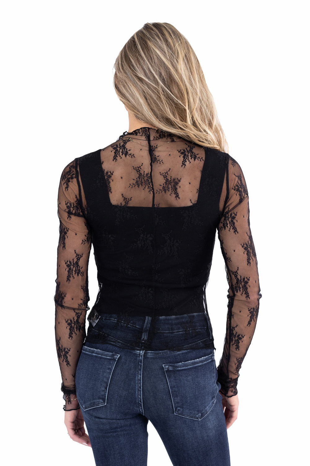 Women's Scalloped Sheer Lace Long Sleeve Top *Final Sale*