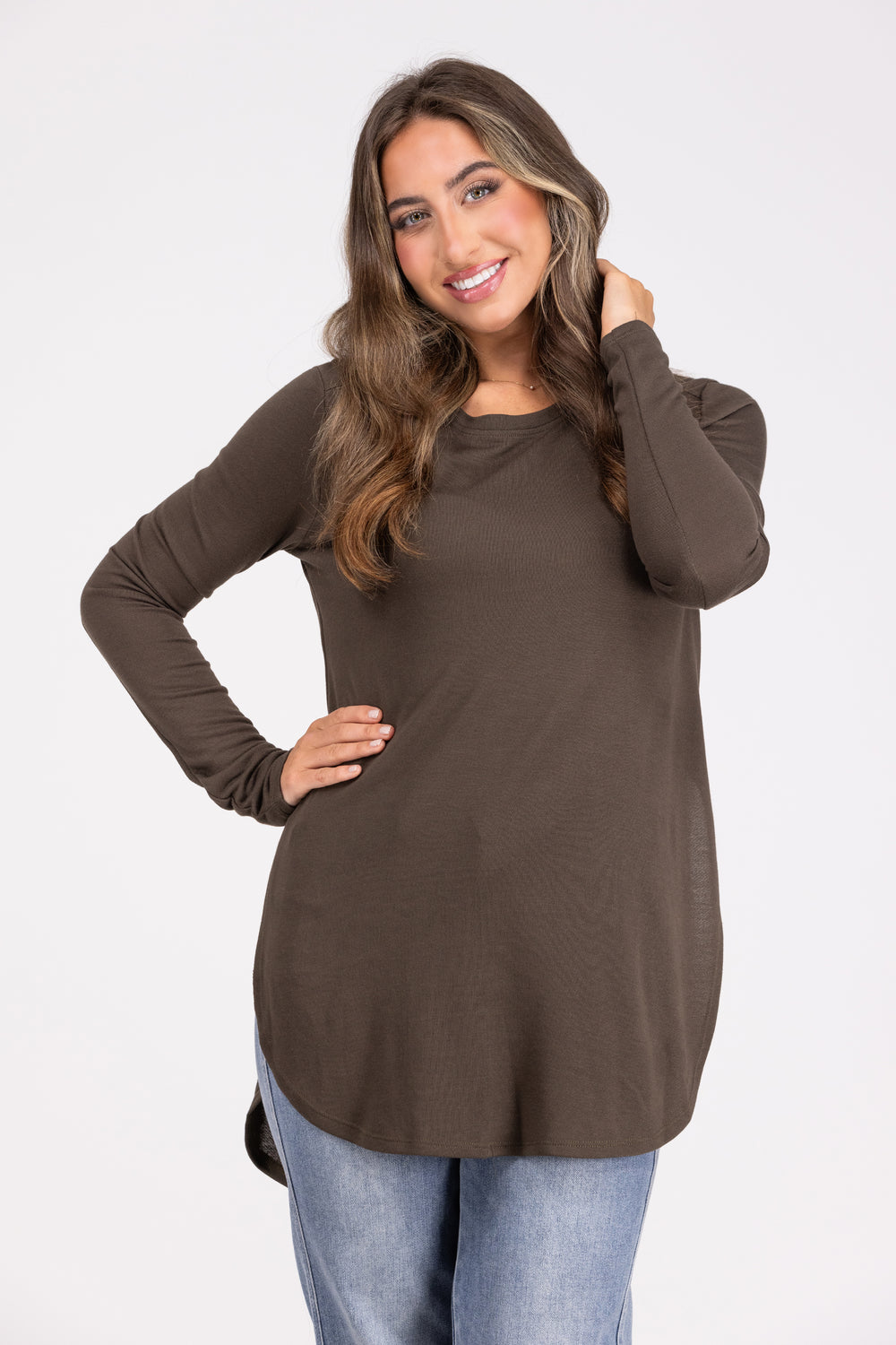 No Frills Women's Classic Curve Hem Long Sleeve Top