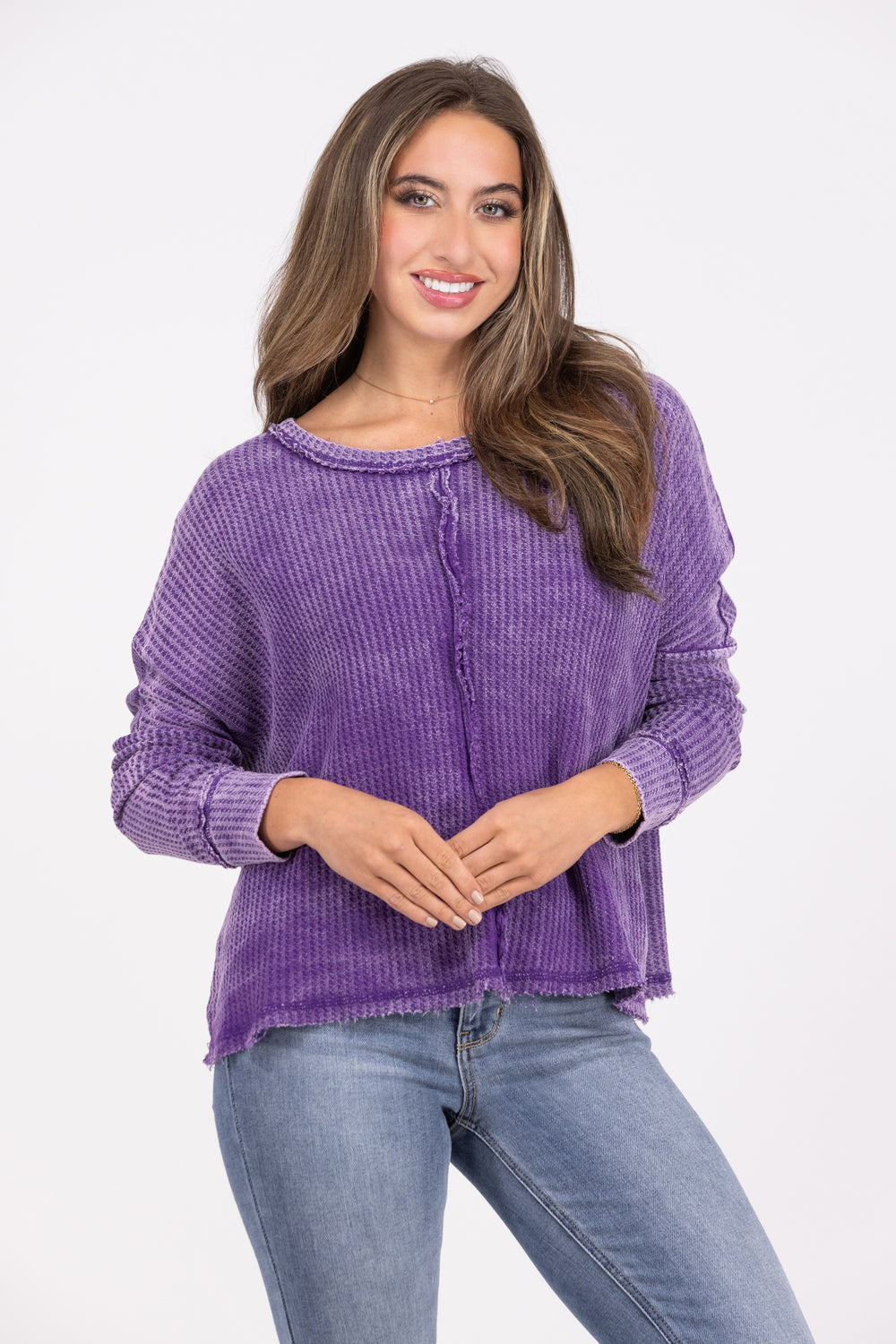 Not Too Fast Women's Washed Waffle Knit Long Sleeve Top *Final Sale*