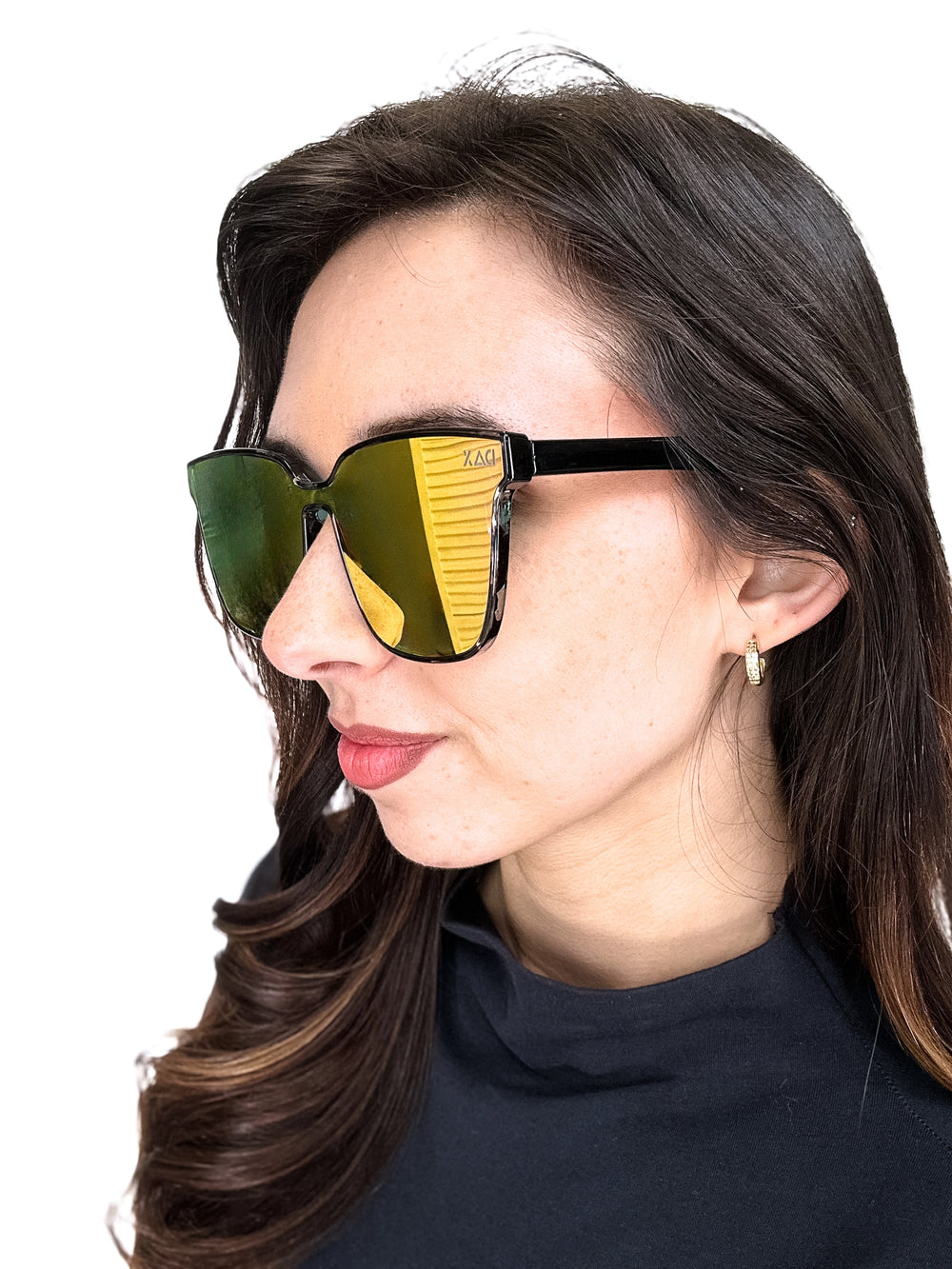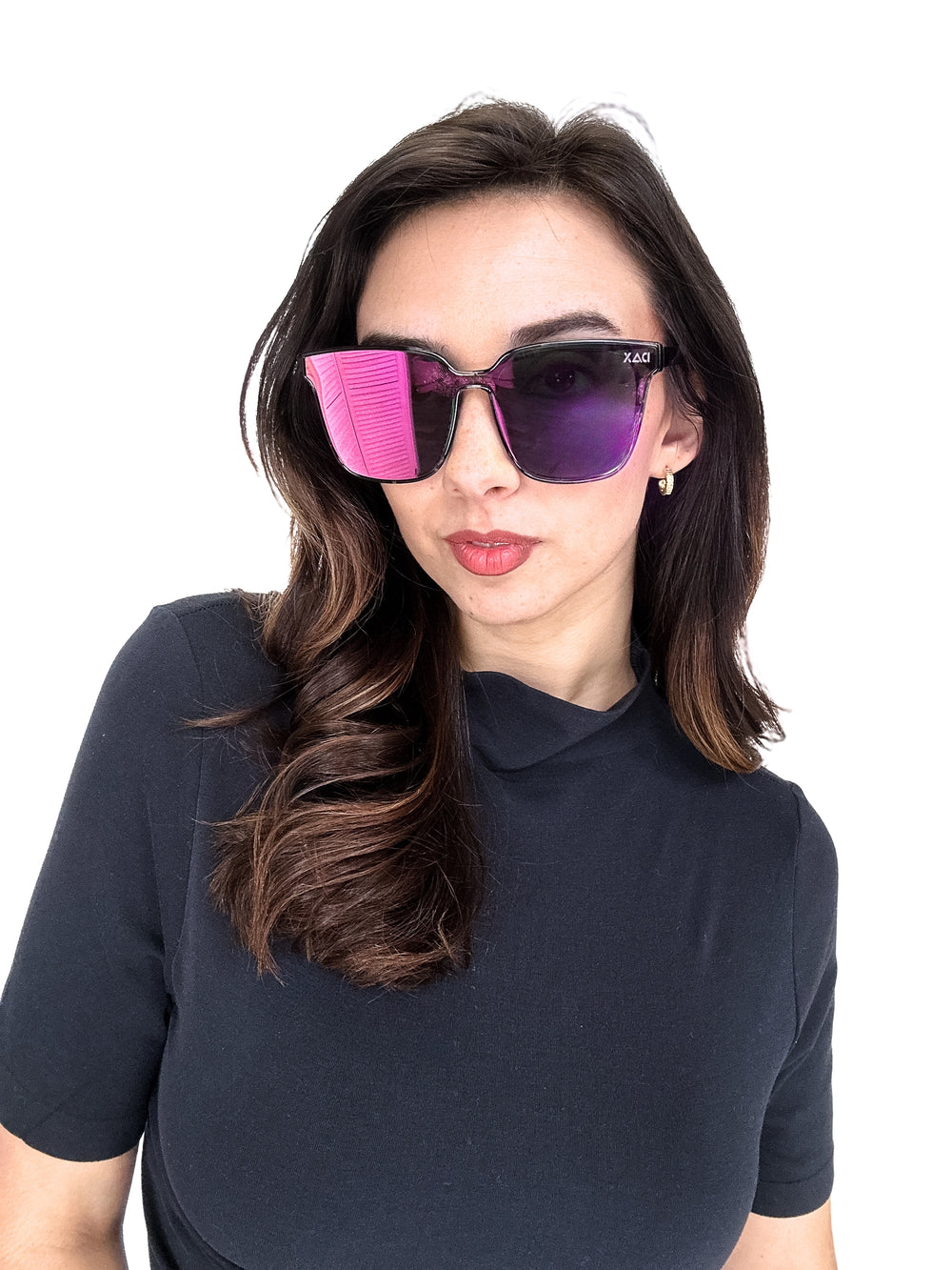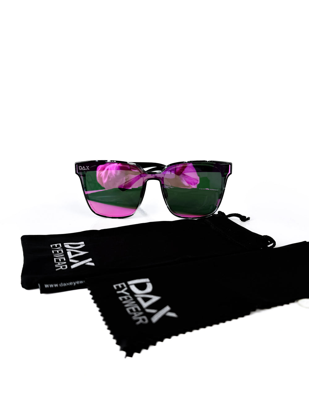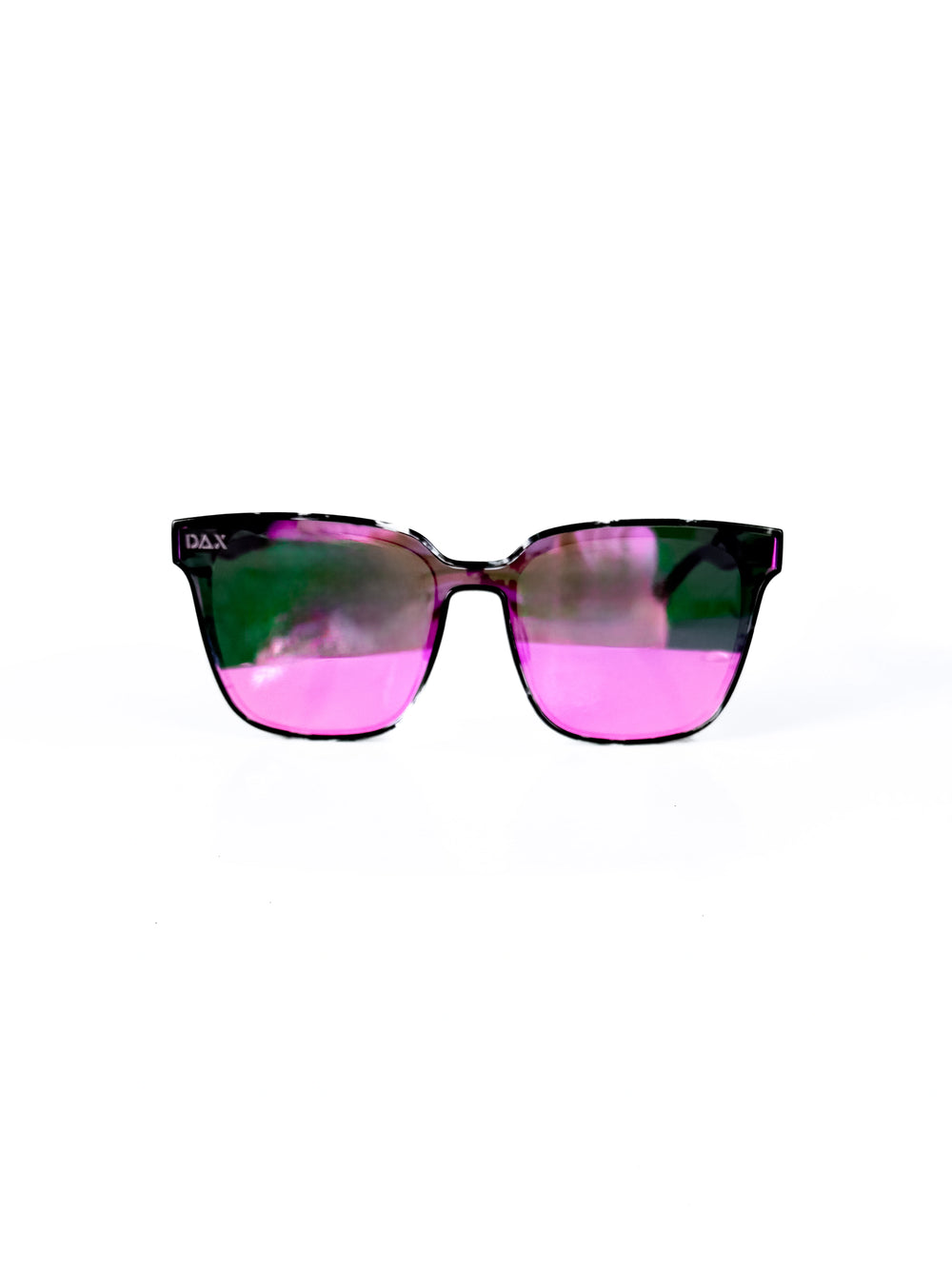 Hot Pink - Black and Cheetah frame with hot pink mirror lens