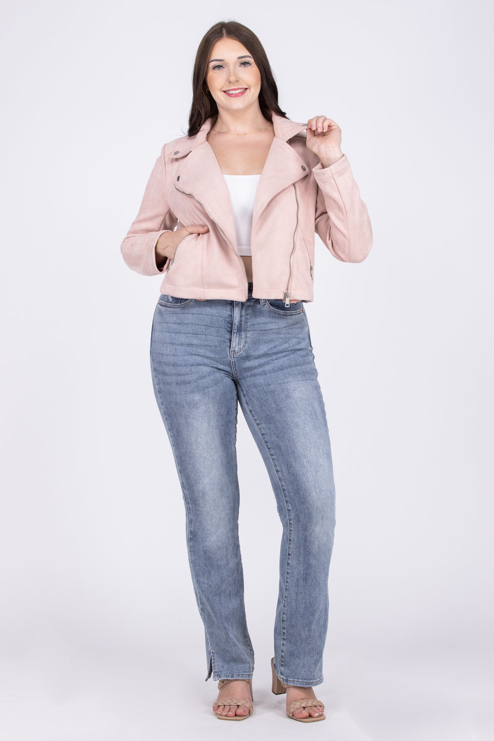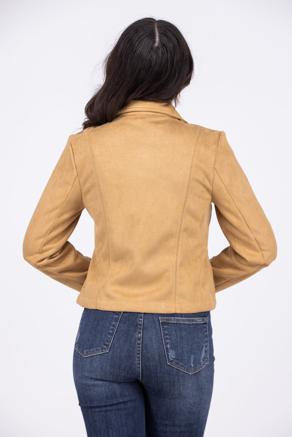 The On The Edge Jacket from Heyson will give an edge to every outfit you pair with it. This suede jacket features an asymmetrical zip up, button details and zip up side pockets. The On The Edge Jacket can be dressed up or down for any occasion.