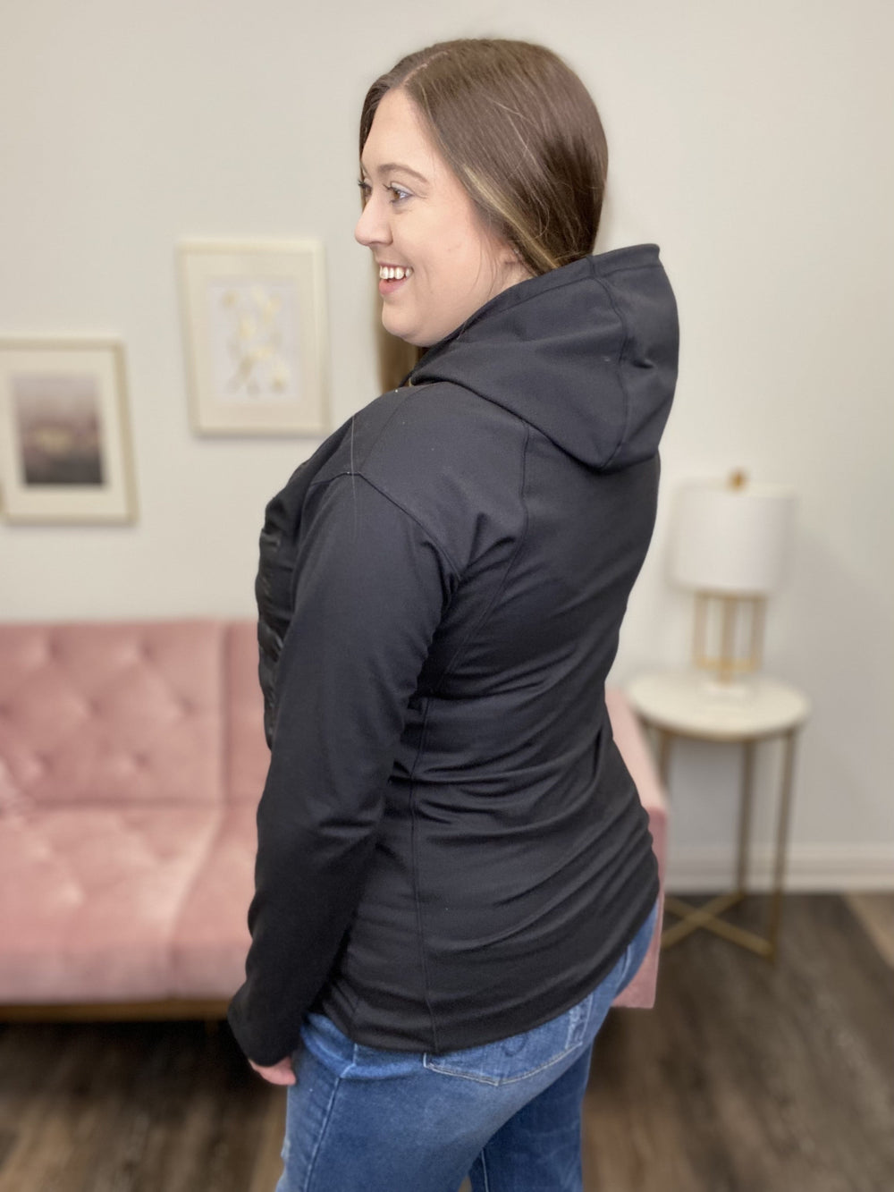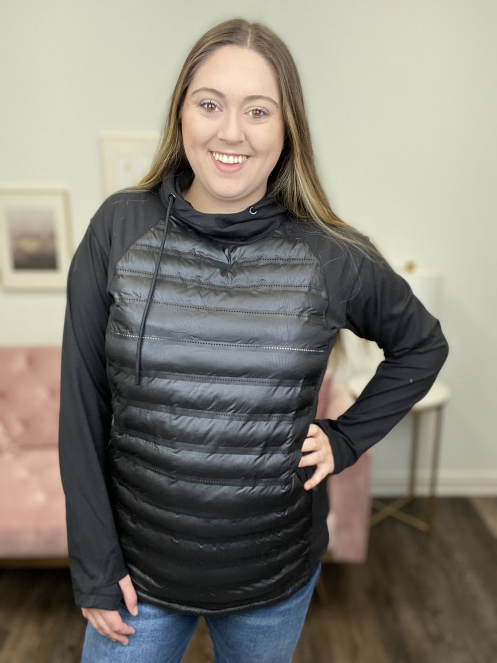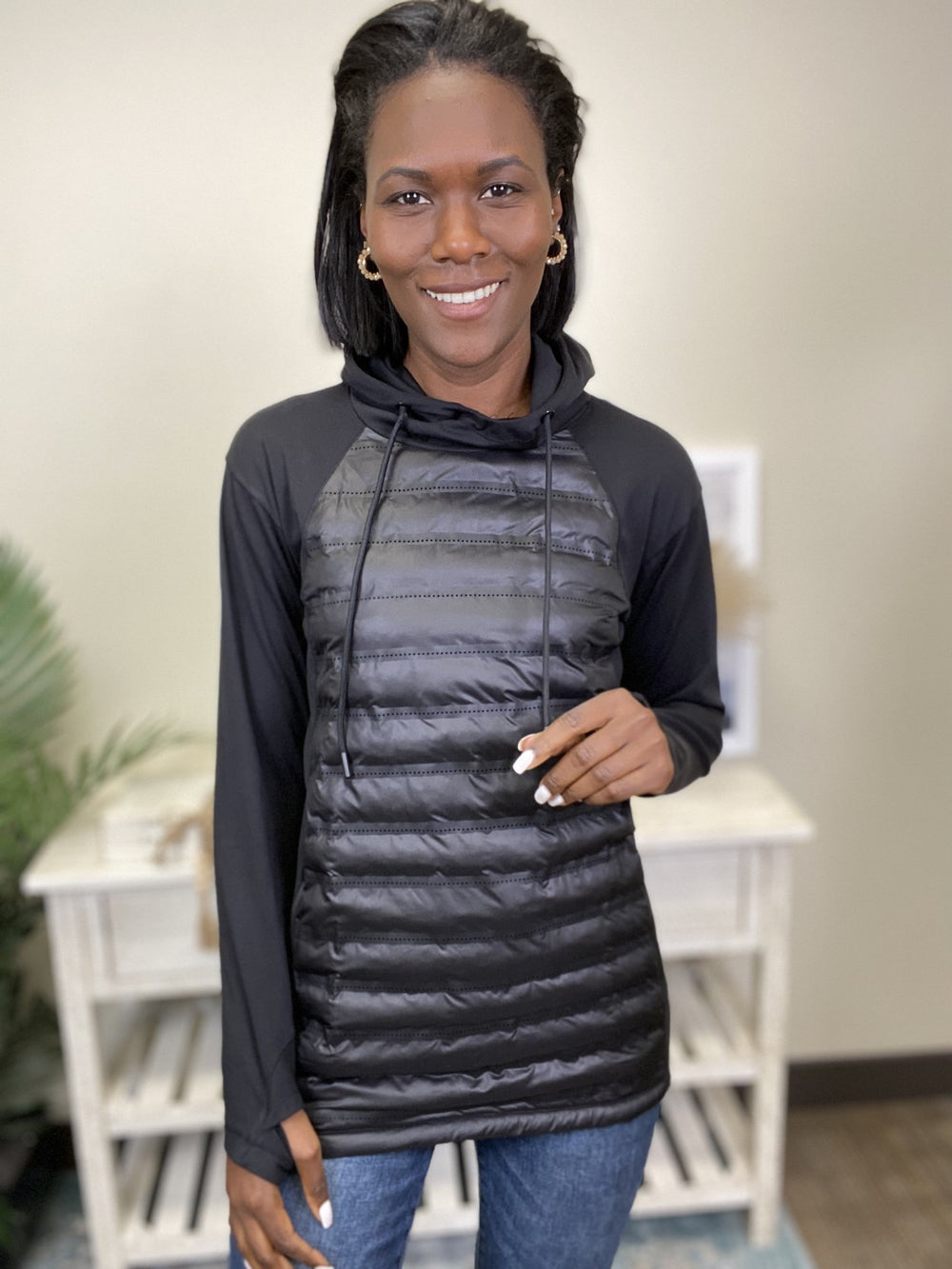 The Only Joy Padded Front Hoodie by Mono B will bring you nothing but JOY! This hoodie features a fabulous fabric with lots of give for pulling over your head, unique padded front detail, two deep, 6" front zip pockets for security, full hood with adjustable toggle for added warmth, finished hem and thumb holes. Pair this hoodie with all workout gear or denim and tall black boots!