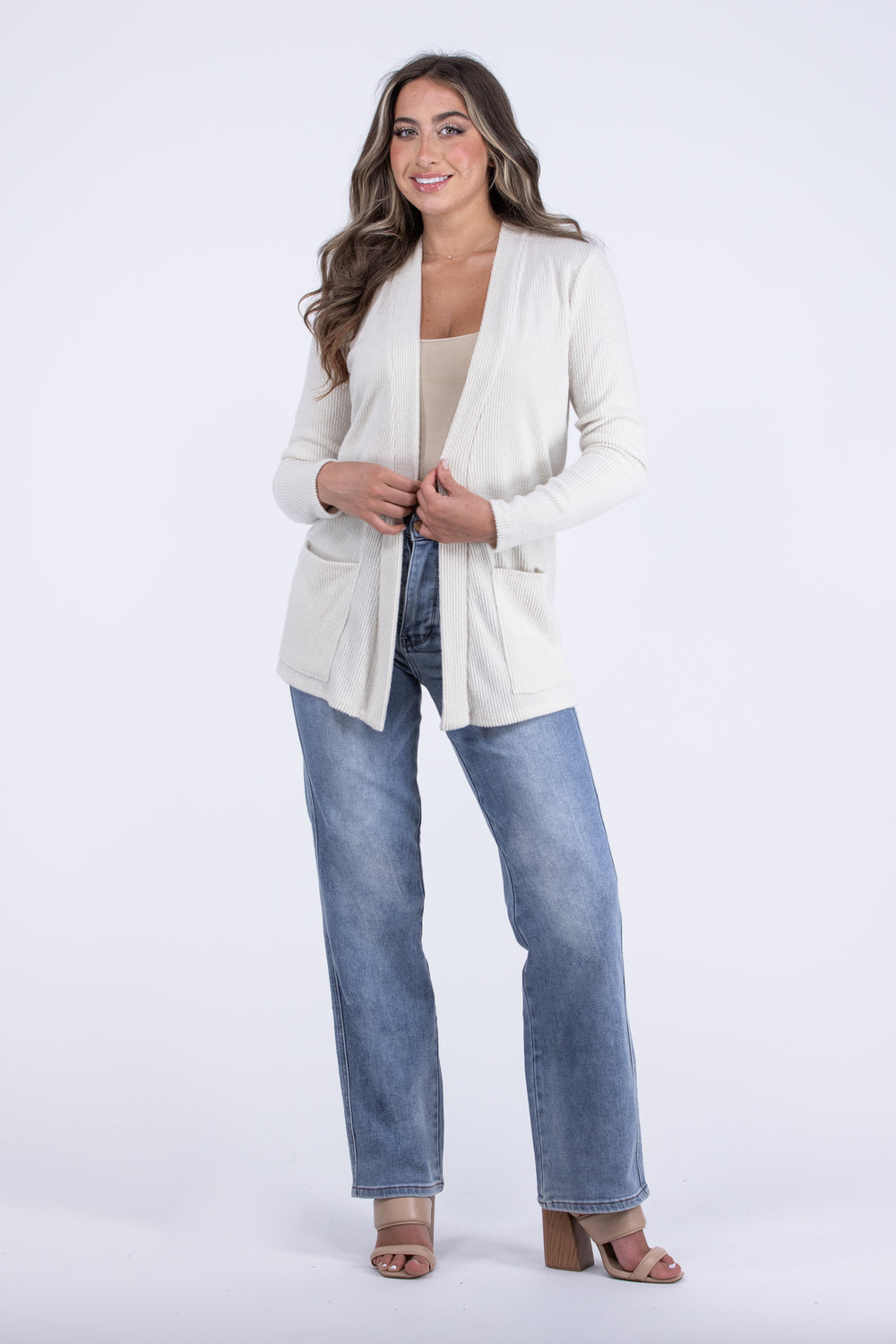 Open Book Women's Ribbed Open Front Layering Cardigan