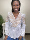 Out With Friends Women's Embroidered Striped Long Sleeve Top