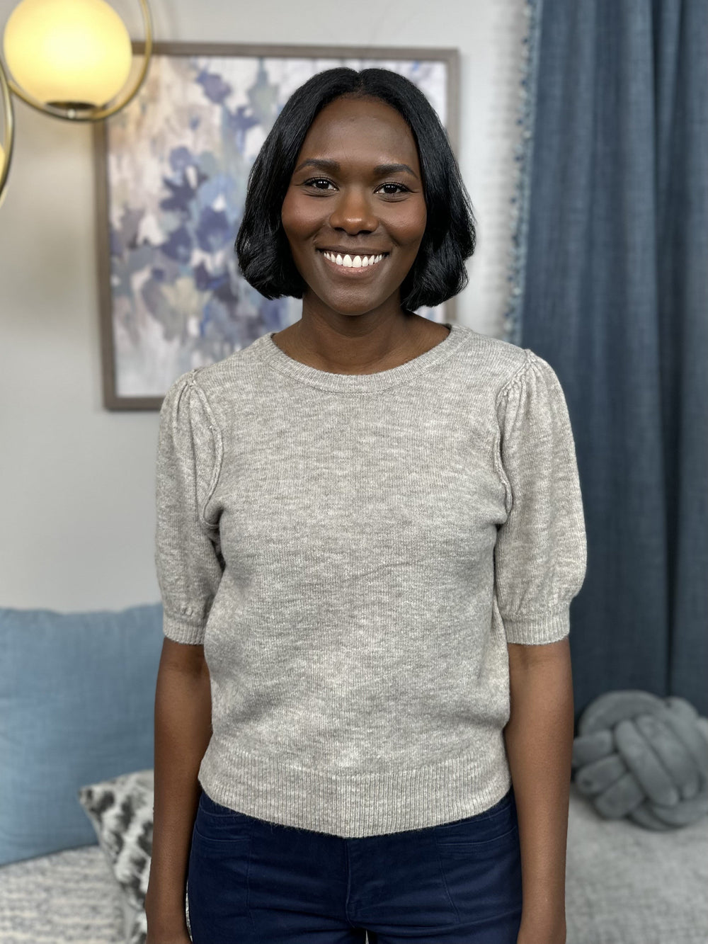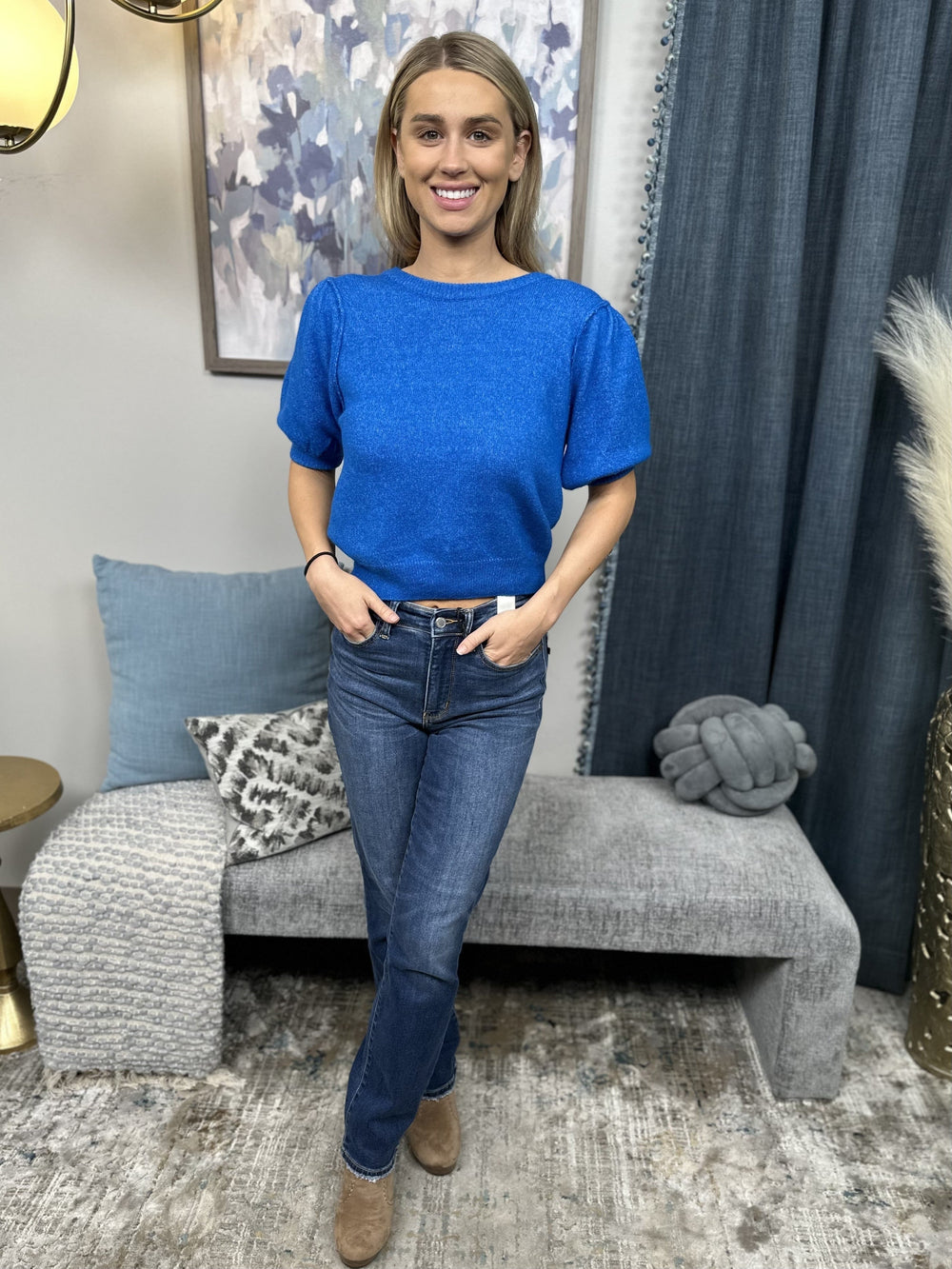 This sweater from Zenana will send you Over The Edge with its super soft feel! This mid weight sweater features a rounded neck with puff sleeves and a fitted bodice. Perfect for a business casual look when paired with a skirt or slacks!